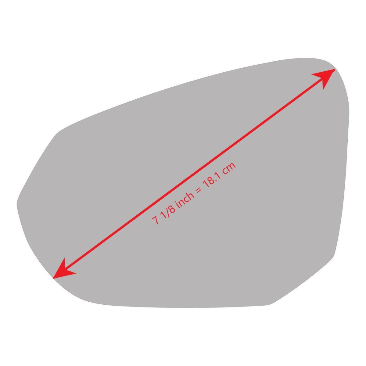 Automotive Grade replacement mirror glass. Actual picture shows mirror glass on top and adhesive at the bottom. No plastic backing plate attached or included.. Diagonal Measure (Longest): 7 1/8 inch = 18.1 cm. Longest diagonal dimension provided is the longest size of the glass in any direction, normally longest top to opposite bottom corners measurement.. Includes double-sided Automotive Grade adhesive contoured to mirror shape that provides optimum heat transfer and easy installation. This feature is in contrast with small inefficient adhesive patches that fail shortly after installation, and leave air gap between bonding layer. Aluminum back coated real mirror glass for automotive application. This feature is in contrast with glasses with chrome paint spray film on top that look like mirror but top chrome spray fades or scratches over short time..Other fine products