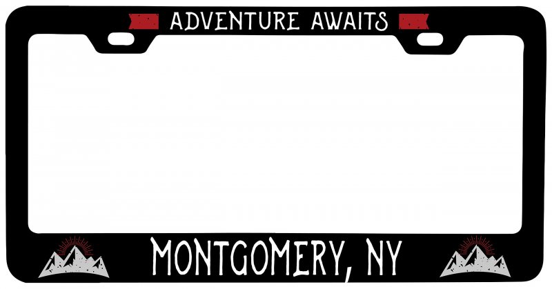 This metal license plate frame features Montgomery New York. Easily attaches with 2 mounting holes at top of frame. Features bright, graphics. Universal fit. Heavy gauge metal frame.