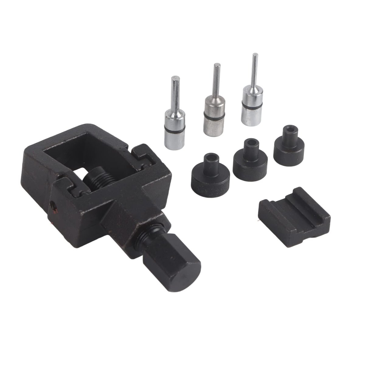 [WIDE APPLICATION]: Versatile chain removal tool compatible with 520, 525, 530, 532 drive chains for motorcycles, ATVs, and cars.. [PRACTICAL MAINTENANCE]: Not just for motorcycles, also suitable for automobile timing chains, making it a practical tool for various vehicles.. [CONSTRUCTION]: Crafted from premium carbon steel for durability and strength to withstand workshop use.. [EASY REPAIR]: Easy to use with a vise or wrench for maximum grip while working on chains, ensuring efficient repairs.. [CHAIN LINK SPLITTER]: Includes 8 chain removers and riveting tools for easy chain separation and installation..Other fine products