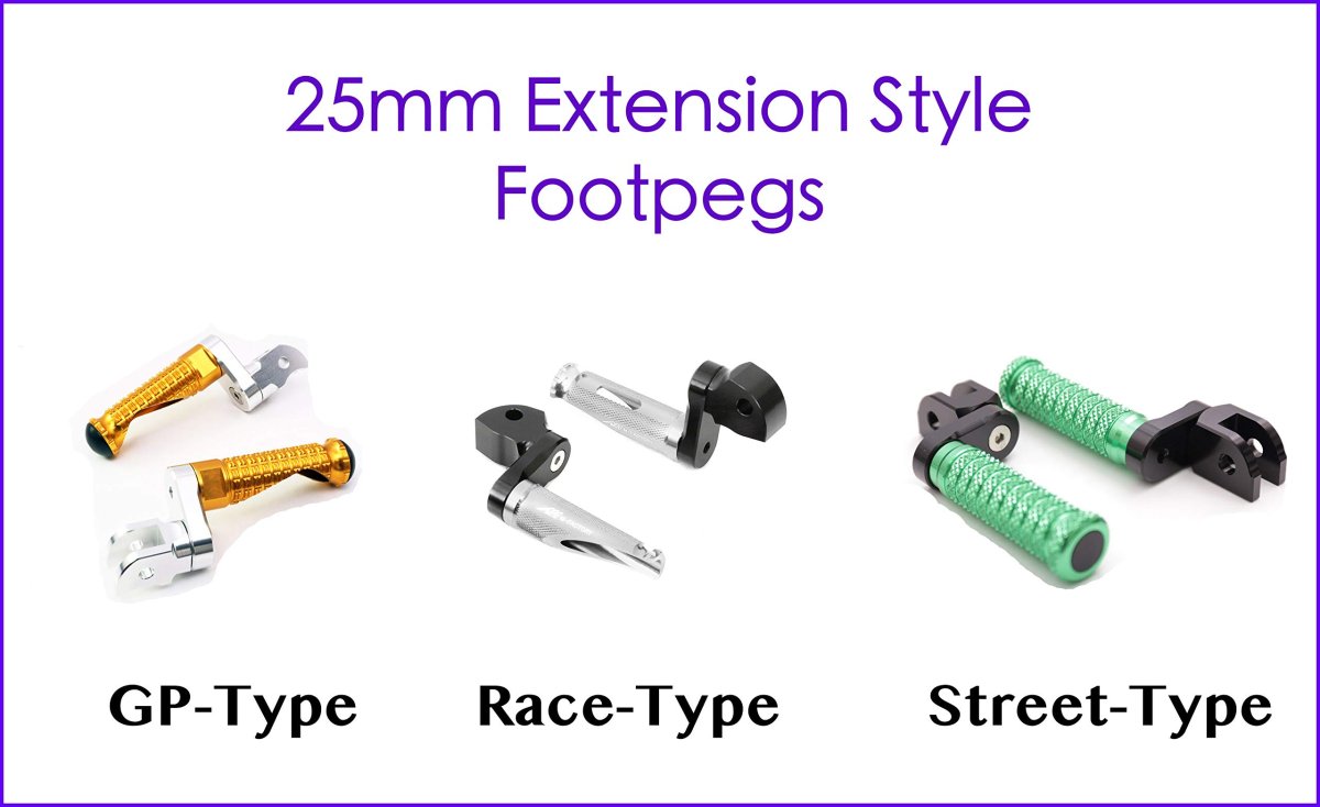 Compatible with Ducati Streetfighter 1098cc / S (2008-2014). Includes one pair of footpeg. The design is intentionally shorter than the original footpegs, measuring 78mm (3.1 inches). It aims to prevent ground contact during cornering, enhancing safety. Additionally, they offer 12 adjustable angles, allowing riders to customize their riding posture for optimal comfort and control. Choices of Extension Length of 25mm, 40mm and no-Extension. And choices of design style: STREET-Type, RACE-Type, GP-Type to showcase your personal taste. This product is meticulously designed and crafted in Taiwan, utilizing precision CNC machining from T6061-T6 Aluminum Alloy. Easy installation. Original "Pin and Spring" are required for installation, therefore are not provided.Other fine products
