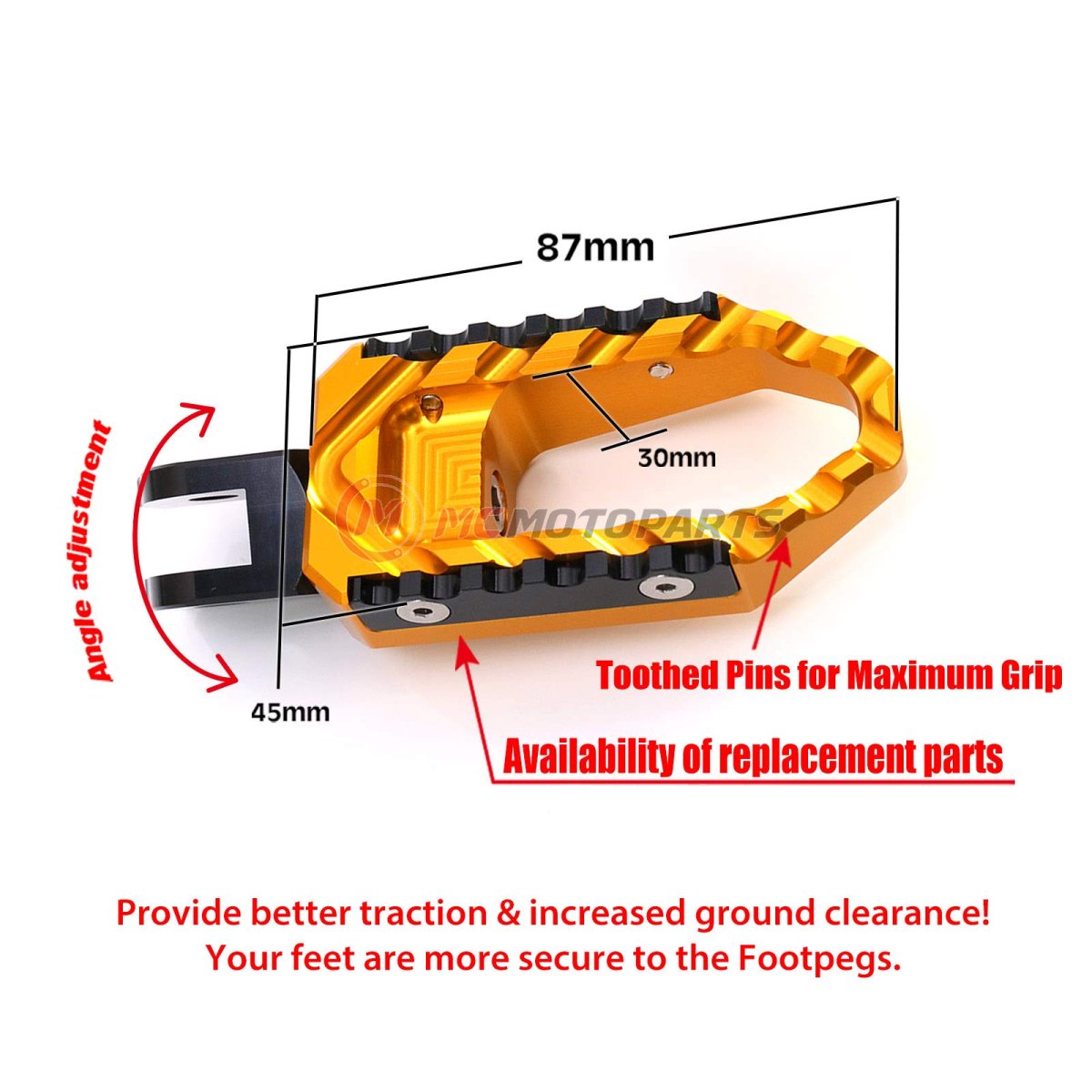 Compatible with Ducati Monster S4RS 2006-2008. Includes one pair of motorcycle footpeg. Footpeg length is 87mm (3.4"). Tooth length is 55mm (2.2"). Safety Mounting Lock to lock the position. Strongest thick platform and round Interlocking teeth design to secure grip. Direct upgrade for stock footrest to stylish billet footpegs. Choices of Extension Length of 25mm, 40mm and no-Extension. This product is meticulously designed and crafted in Taiwan, utilizing precision CNC machining from T6061-T6 Aluminum Alloy. Easy installation. Original "Pin and Spring" are required for installation, therefore are not provided.Other fine products