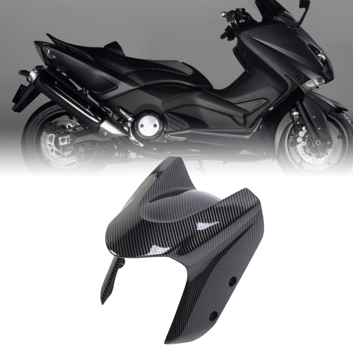 Applicable Model------ The Motorcycle Front Guard is specifically designed for TMAX 530 and 500 , ensuring a fit and optimal performance for your motorcycle.. Stylish Appearance------ The Mud Flap in carbon fiber style not only provides but also enhances the overall aesthetic appeal of your motorbike, giving it that sporty edge.. Safety------ This Fairing Guard effectively against road debris and water spray, promoting safer rides by keeping both you and pedestrians safe from potential hazards.. Construction------ Built from high-strength, lightweight ABS plastic, this Motorcycle Front Mud Flap is engineered for durability, ensuring long-lasting wear while keeping your bike looking top-notch.. Simple Installation------ Enjoy hassle- installation of the Mud Guard with our user-friendly design, allowing you to quickly mount it on your motorcycle without the need for complicated instructions or tools..Other fine products