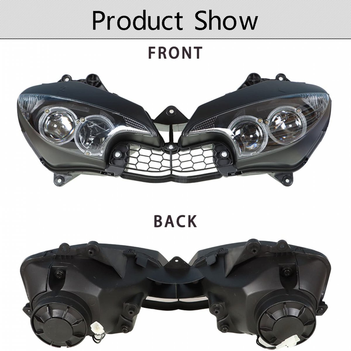 1. Product Compatibility: Headlight replacement for Yamaha YZF R6 2003-2005.. 2. Product Compatibility: Headlight replacement for Yamaha YZF R6S 2006-2009.. 3. Easy Installation: Direct replacement for your existing scratched and damaged headlights. No adjustment needed.. 4. High Class Quality: This product is constructed with high-quality material and rigorously tested to ensure structural strength and integrity.. 5. Package Included: 1x Headlight, Bulb(s) are not included..Other fine products