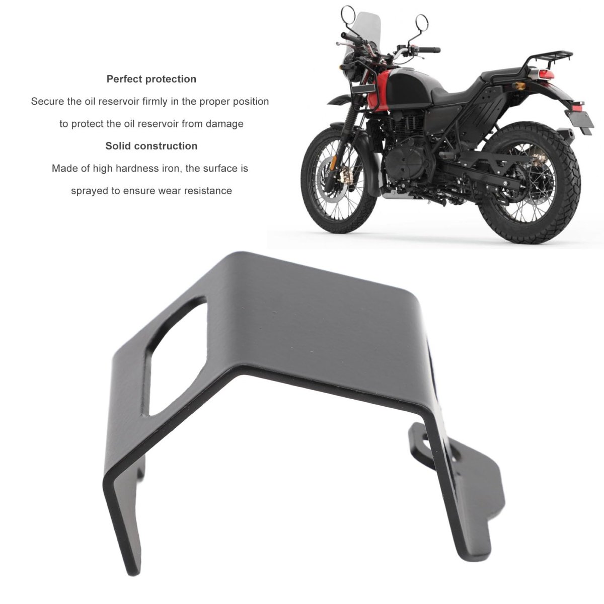 [Stylish Appeal] Not only does this guard the reservoir, but it also adds a rugged and stylish look to your motorcycle's aesthetic.. [Enhanced Safety] Securely mounting the brake reservoir prevents tearing or damage, ensuring a smoother and safer ride.. [Fit for Specific car types] Designed to fit himalayan 20182023 and scram 411 20212023 car types for a secure and installation.. [Sturdy ] Crafted from high hardness iron block with a wear-resistant coating, this guard ensures longevity.. [Easy Installation] With a solid protective component, the reservoir is firmly secured, eliminating the risk of damage or loss during rides..Other fine products