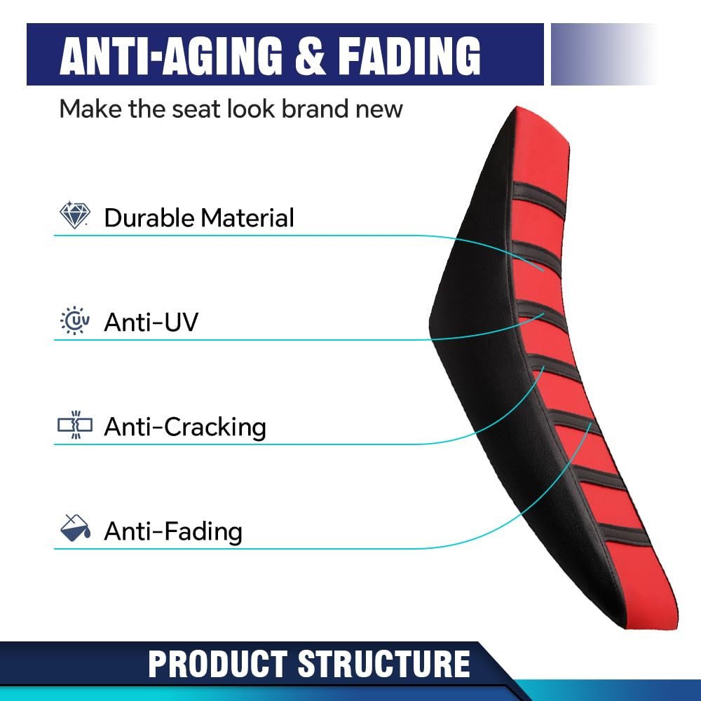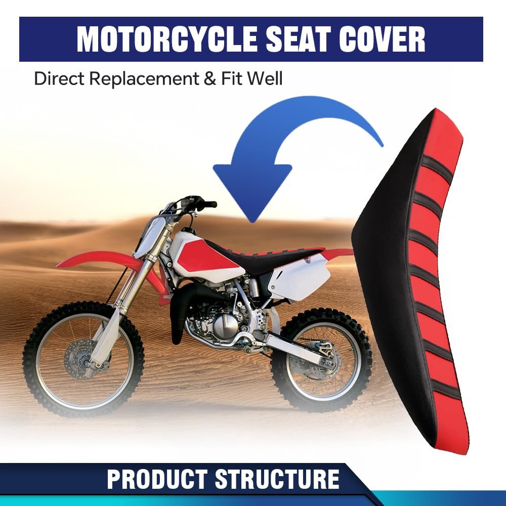 COMPATIBILITY: Compatible with Honda CR125R CR250R CR500R CR80R CRF100F CRF125F CRF150F. Fit for most of dirt bike. Fit for OEM seat. HIGH STRENGTH FABRIC: The fabric of the seat cover is usually made of high-strength, tear-resistant high-quality leather, which can withstand all kinds of pulling and friction in daily use and is not easy to be damaged. FINE PRODUCTION: From cutting to stitching, each step is carefully processed to ensure that the edges of the seat cover are neat and the threads are even, and there are no defects or loopholes.. IMPROVE BREATHABILITY: The seat cover is designed with breathable holes that can promote air circulation and reduce the feeling of stuffy heat and moisture accumulation. Can keep riders dry and comfortable during long riding. DIRECT REPLACEMENT: The seat cover can be directly removed or installed. No complex tools and operations required.Other fine products