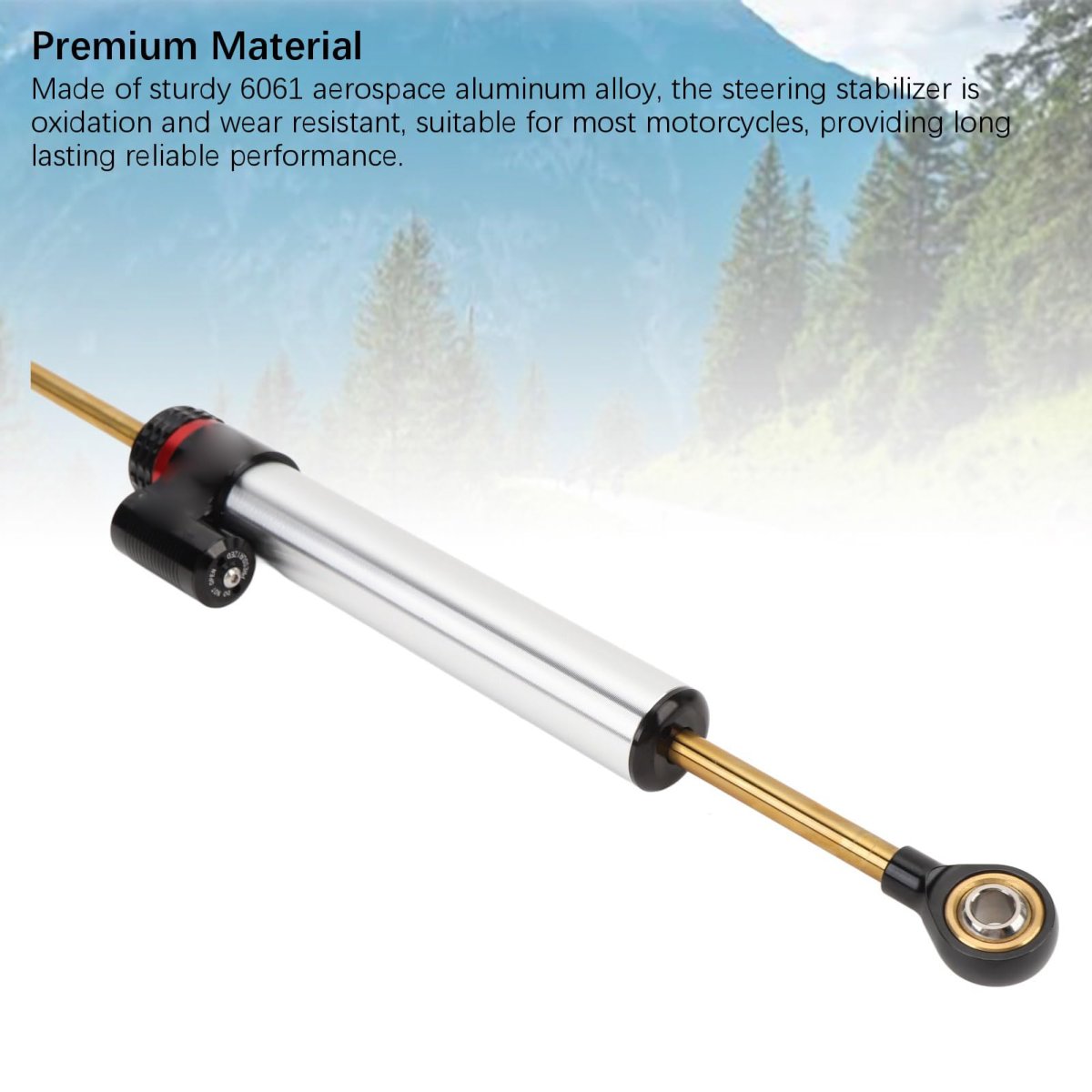 [Sensitive Control] Featuring a speed-sensitive damping system, this motorbike steering damper offers more responsive handling, reduces fatigue, and enhances overall control.. [Universal Fit] Easy to install without modifications, suitable for all motorcycles, and recommended for bikes over , boosting rider confidence and control.. [Sturdy Material] Made of 6061 aerospace aluminum alloy, this steering stabilizer is stable and wear-proof, ensuring long-lasting performance on most motorcycles.. [Improved Stability] Reduce front-end wobbling at high speeds, minimize vibrations on uneven surfaces, and enhance cornering stability for smoother and safer rides.. [Enhanced Safety] The steering damper enhances the stability of the motorcycle front wheel by effectively resisting forces that could cause sudden steering changes, providing a safer riding experience..Other fine products