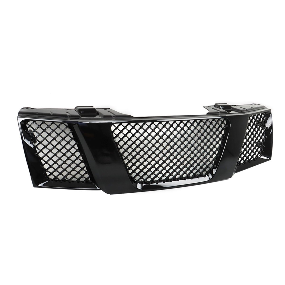 Antuko Mesh Middle Grille Front Bumper Grill Kit Assembly Gloss Black Replacement For 2005 2006 2007 2008 Frontier