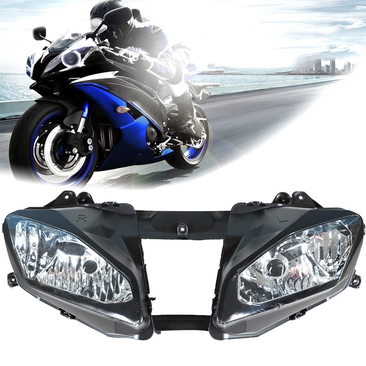 Fitment: Replacement for 2008-2016 YZF R6 a011. Basic function: It is Illuminate the road ahead during periods of low visibility. Durable and practical: This front headlight with good conditions of use, high reliability, and long service life. Advantage: Front headlamp made of premium quality durable materials, shock and vibration resistance. Easy to install: Directly replace the old or damaged original accessories without modification and adjustment.Other fine products