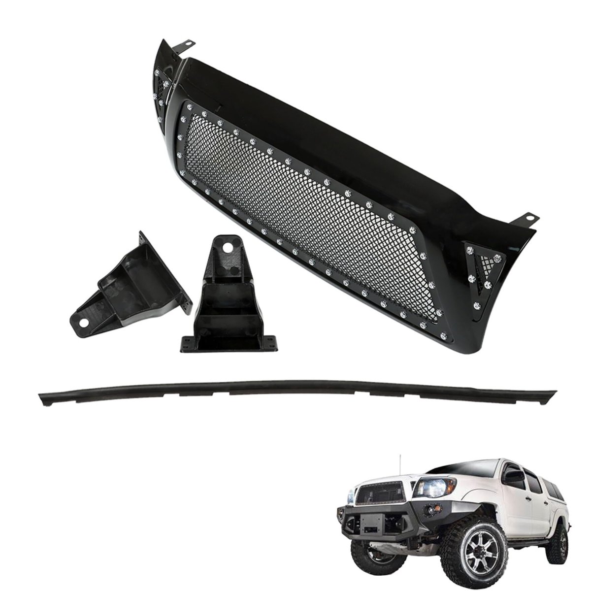 Fitments - Replacement for 2005 2006 2007 2008 2009 2010 2011 Tacoma Pickup. Durable Material - The grille made from ABS materials which is light weight and durable, sing advanced production technology, withstand rough road wear and the test of time. Powerful Function - Prevents outside objects from damaging the internal parts of the vehicle while driving, effectively protect the vehicle engine and radiator. Gloosy black - The color of grille is high-end, luxurious, noble and fashionable, can be used as a good decoration for vehicleswhich can bring a new look to your vehicle. Professional Installation - Easy installation. Installation instructions are not included, professional installation is always recommended.Other fine products