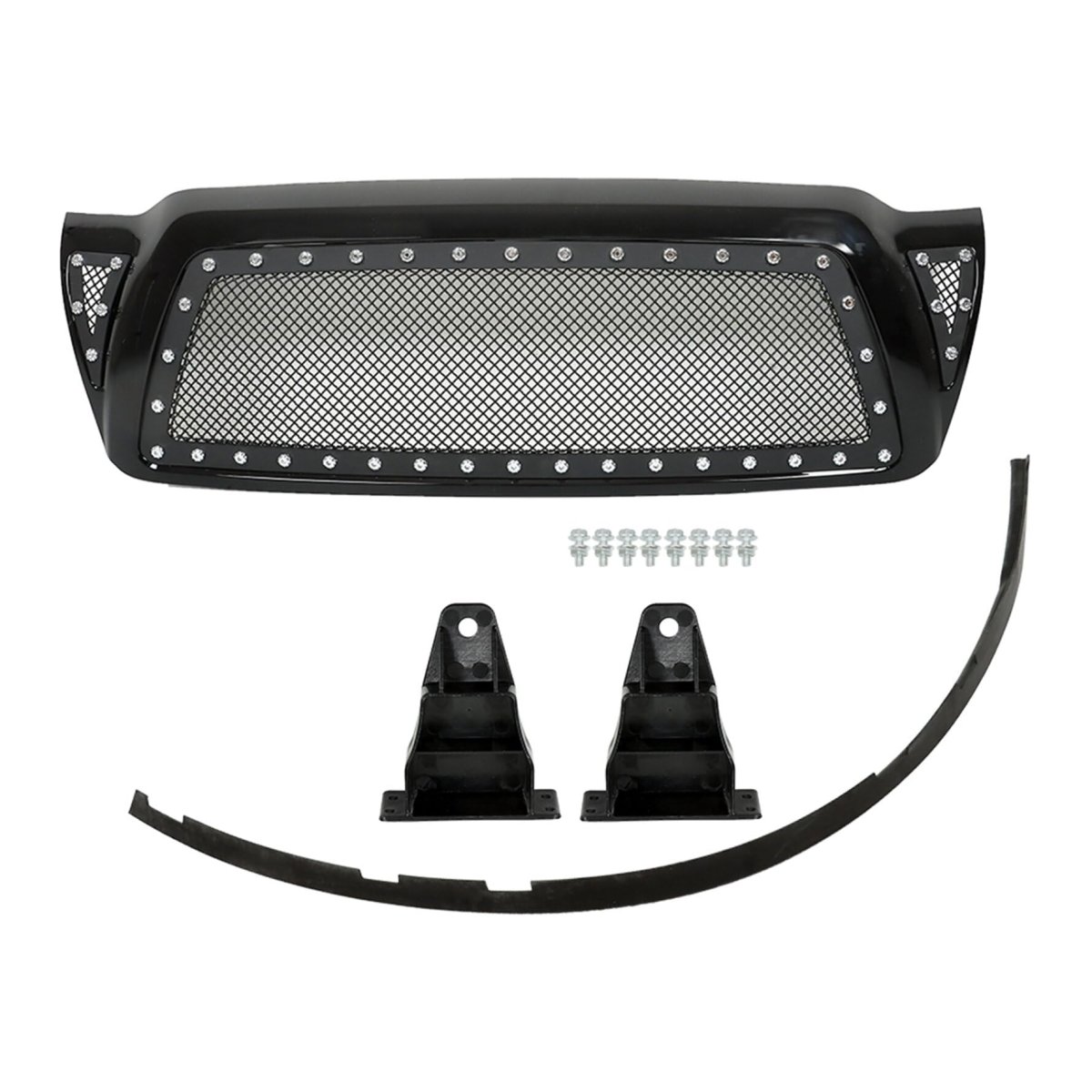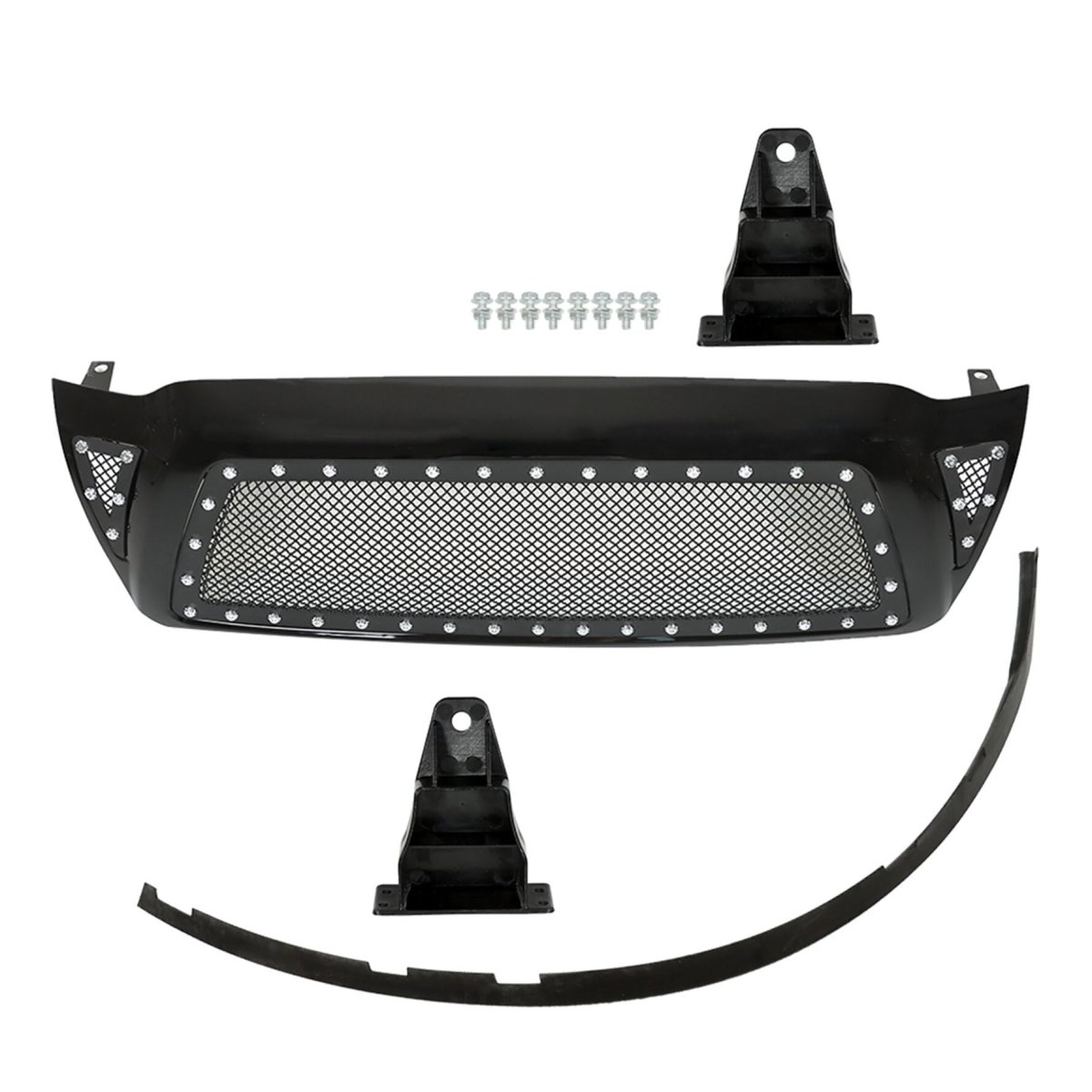 - Munirater Front Hood Grill Rivet Mesh Grille Gloss Black Replacement For 2005-2011 Tacoma Pickup