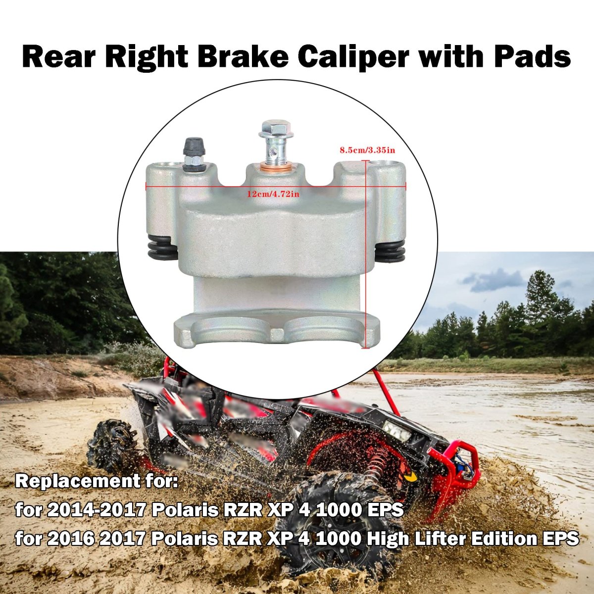 Replacement for - 2014-2017 Polaris RZR XP 4 1000 EPS. Reference OEM Number - 1912375 1911429 1912142 1911288 1912027. Good Material - It is made of precision parts and good material seals. Superior Performance - Designed and tested to meet or exceed the original part standards and performance. Package Includes - 1x Brake caliper, 2x brake pads, 1x mounting bracket.Other fine products