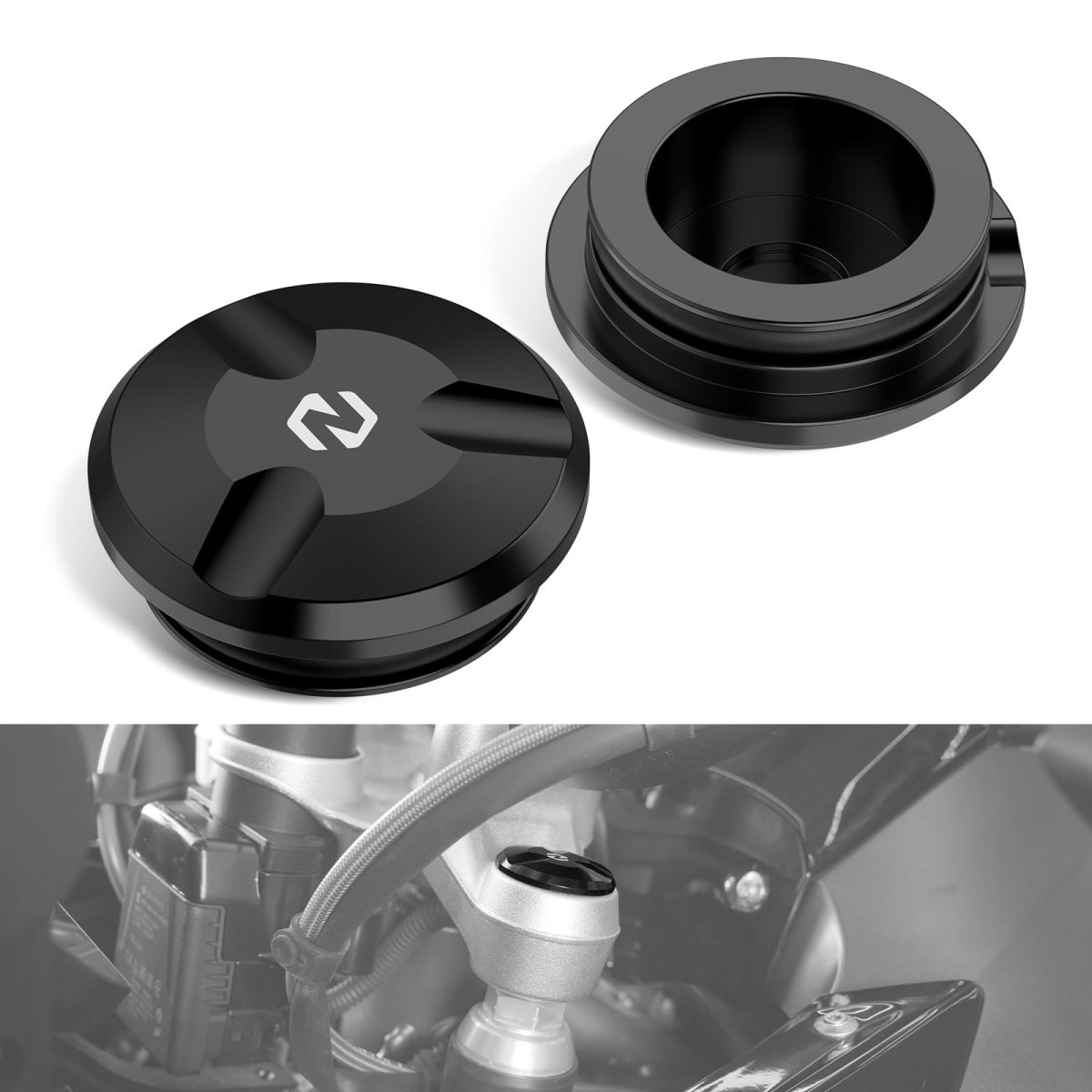 Premium Material: Our Front Fork Top Tube Cover is crafted from aircraft-grade 6061 aluminum alloy, ensuring exceptional strength and durability while enhancing the overall aesthetic of your motorcycle.. Elegant Design Upgrade: Replace the ordinary rubber cap with our sleek fork top tube cap, adding a touch of elegance to your motorcycles top yoke and creating a unique style that stands out.. Corrosion-Resistant Finish: The anodized finish not only enhances the appearance of the fork top tube cap but also provides superior protection against corrosion and rust, ensuring long-lasting performance..Other fine products