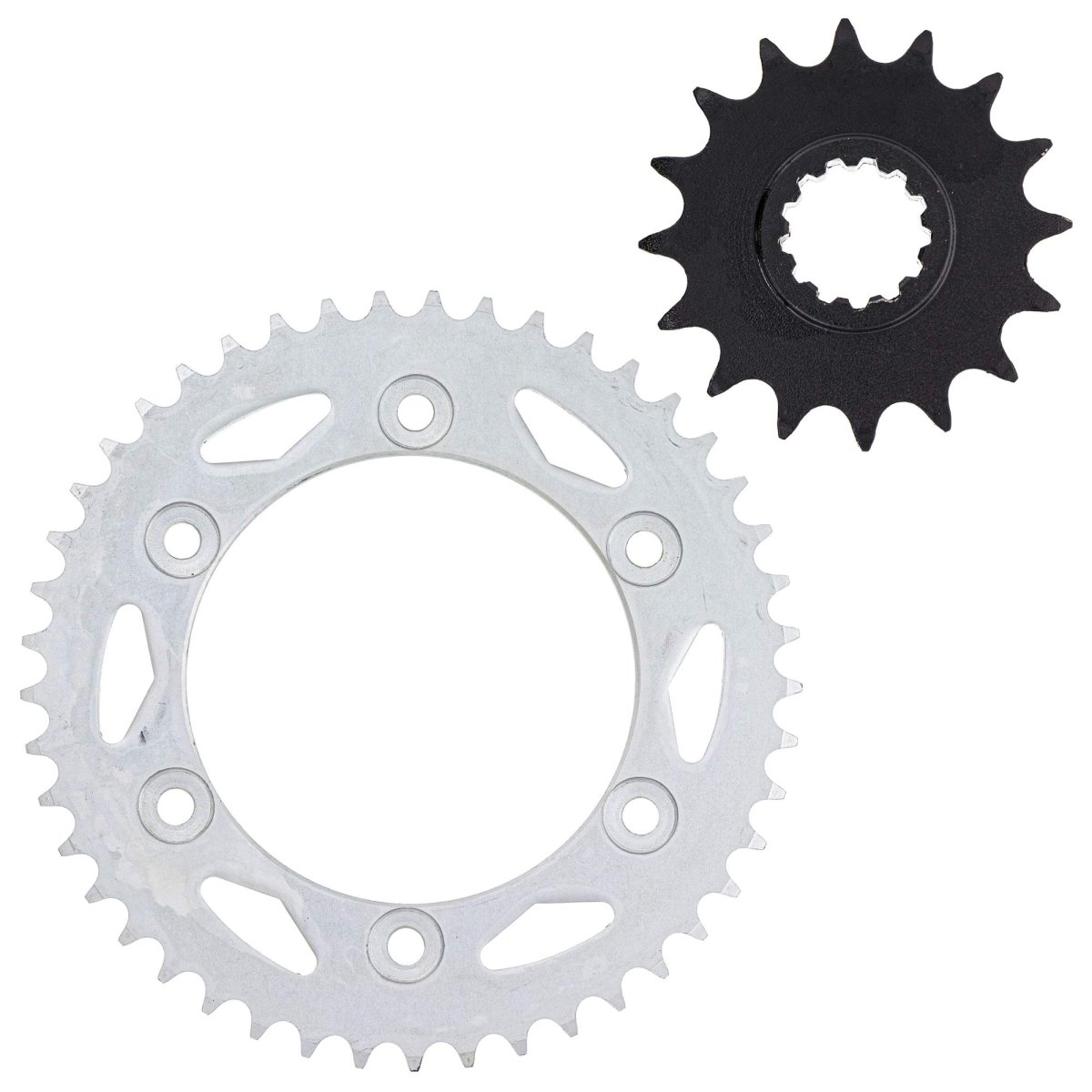Compatible with 2001-2007 Honda CBR600F. Pitch 520. Kit includes 1 Front 16 tooth drive sprocket, and 1 Rear 45 tooth drive sprocket; Sprocket Material consists of SAE 1023 structural carbon steel. Kit includes 1 Front 16 tooth drive sprocket, and 1 Rear 45 tooth drive sprocket; Sprocket Material consists of SAE 1023 structural carbon steel. Hub Inner Diameter 24mm; Hub 2 (ID) 28mm; Hub Inner Diameter 125mm; Mounting Hole (ID) 8.5mm; Distance Between Mounting Holes (ID) 153mm.Other fine products