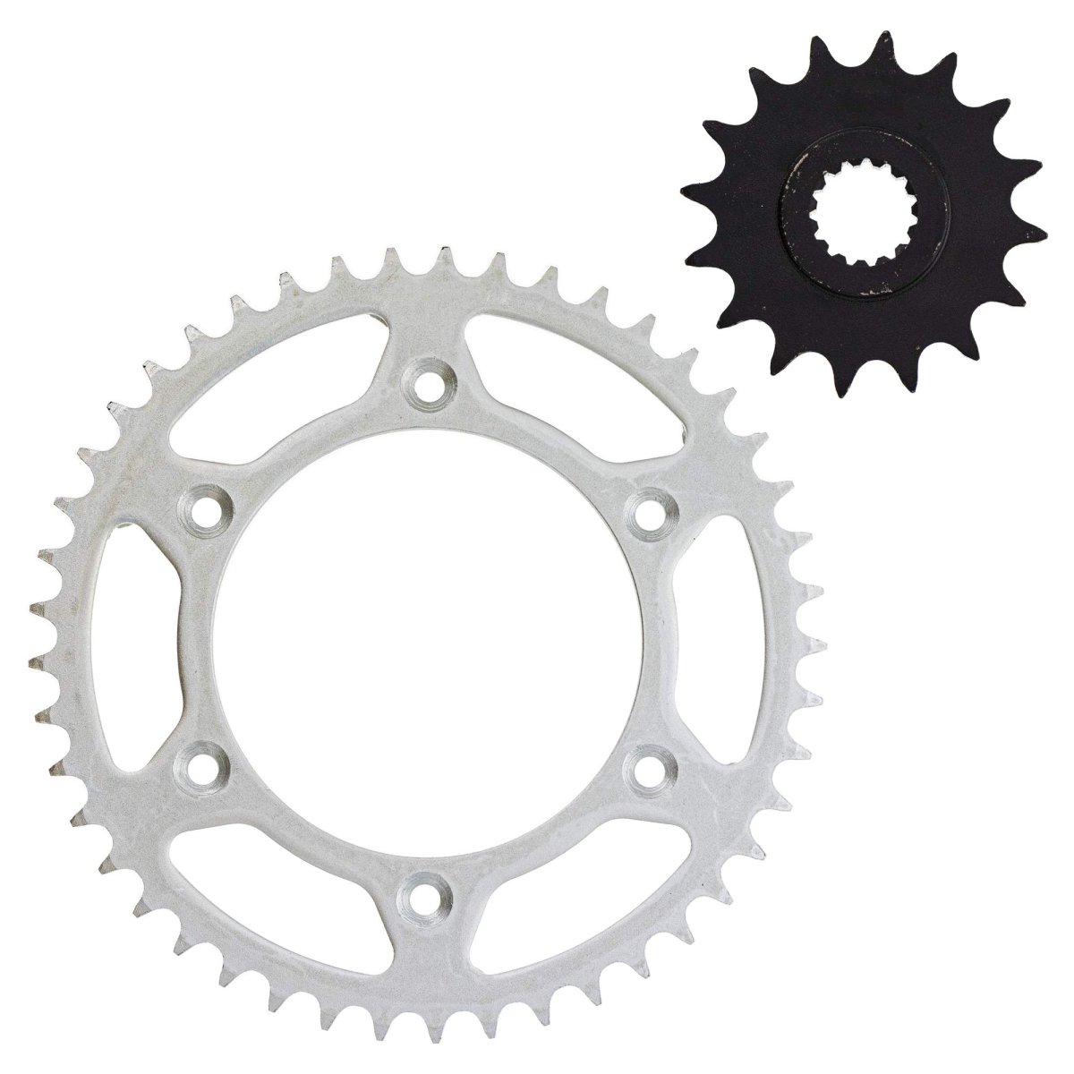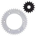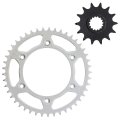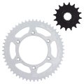 Compatible with OEM Part Front Drive Sprocket KTM 58033029116, Husqvarna 58033029116, Rear Drive Sprocket KTM 7771015104501, 58310151045, 75010051045, 7771095104504, 5831015104504, Husqvarna 58310151045, 75010051045, 7771015104530. Compatible with 1998 KTM 400 TXC. Compatible with 2000 KTM 400 LC4-E. Front Drive Sprocket Pitch 520, Teeth 16; Rear Drive Sprocket Pitch 520, Teeth 45; Sprocket Material consists of SAE 1023 structural carbon steel. Hub Inner Diameter 21.7mm; Hub 2 (ID) 25mm; Hub Inner Diameter 110mm; Mounting Hole (ID) 10.5mm; Distance Between Mounting Holes (ID) 130mm.Other fine products