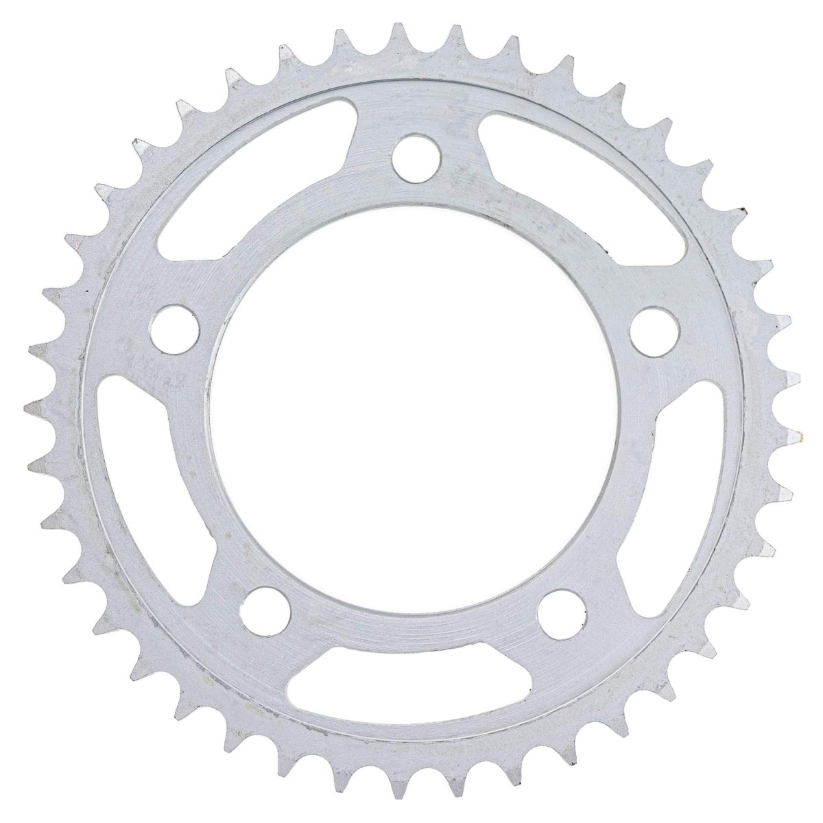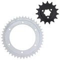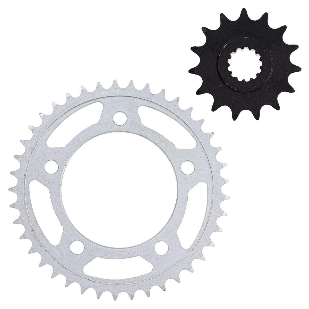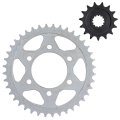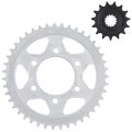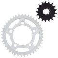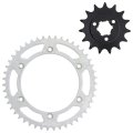 Compatible with OEM Part Honda 41201-MBA-000, 23800-098-000. Compatible with 2004-2008 Honda CBF500. Pitch 525. Kit includes 1 Front 15 tooth drive sprocket, and 1 Rear 41 tooth drive sprocket; Sprocket Material consists of SAE 1023 structural carbon steel. Hub Inner Diameter 26mm; Hub 2 (ID) 30mm; Hub Inner Diameter 136mm; Mounting Hole (ID) 8.5mm; Distance Between Mounting Holes (ID) 156mm.Other fine products
