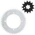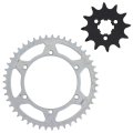 Compatible with OEM Part Suzuki 27511-31D00. Compatible with 1994 Suzuki DR800. Pitch 525. Kit includes 1 Front 15 tooth drive sprocket, and 1 Rear 47 tooth drive sprocket; Sprocket Material consists of SAE 1023 structural carbon steel. Hub Inner Diameter 26mm; Hub 2 (ID) 30mm; Hub Inner Diameter 110mm; Mounting Hole (ID) 10.5mm; Distance Between Mounting Holes (ID) 130mm.Other fine products