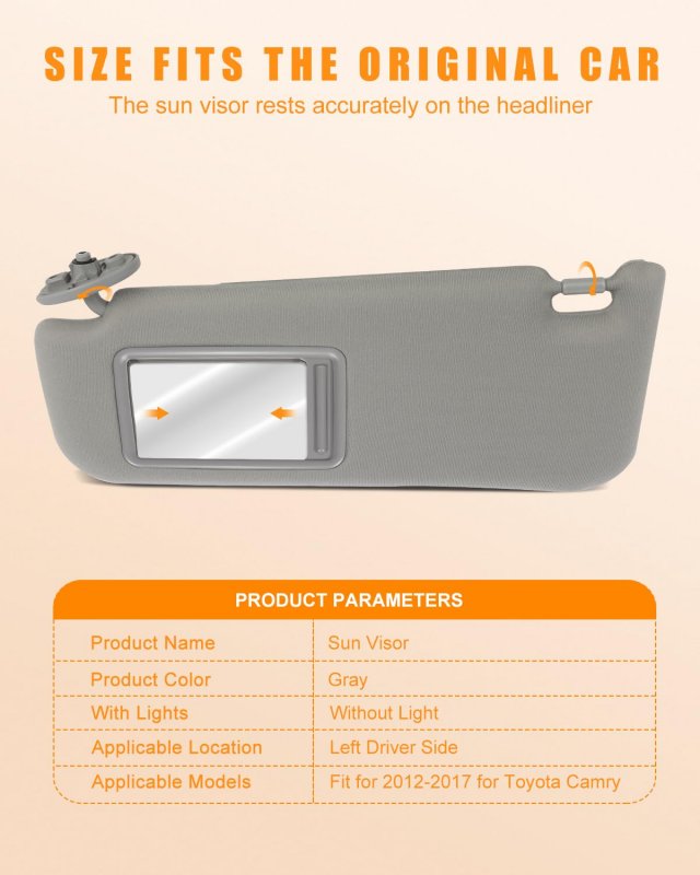 - Ocpty Gray Sun Visor Left Driver Side Without Sunroof Vanity Light Fit For 2012 2013 2014 2015 2016 2017 Toyota Camry