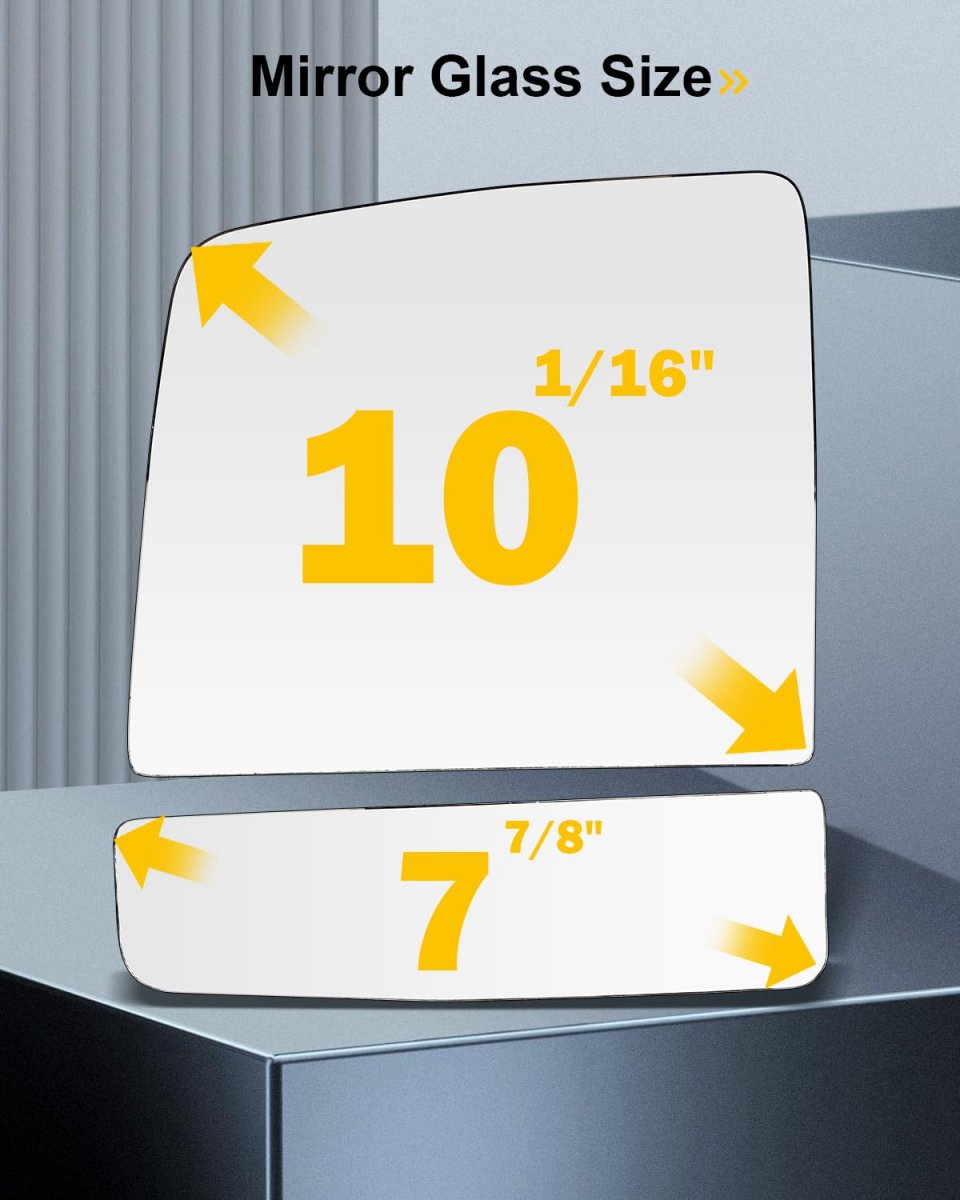 VEHICLE COMPATIBILITY-2008-2017 For Toyota For Sequoia,2007-2017 For Toyota For Tundra. ABOUT GLASS SIZE-Left SideUpper Lens:19.5*17;Lower Lens:19.5*5.5inchs.. QUICK AND EASY TO INSTALL:These towing mirrors are manufactured according to factory OE standards.The product is easy to installation, No drilling or cutting needed,all necessary parts are included. WHAT'S INCLUDED -Left Side Upper Flat and Lower Convex Glasses,Mirror Glass with Adhesive Pads,No backing plate included.Other fine products