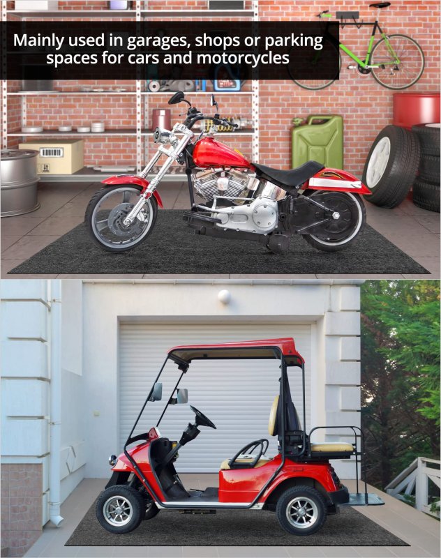 Multi-purpose: The parking mats can be used on any surface of the parking lot, suitable for all kinds of floor protection, mainly used in garages, shops or parking spaces for cars and motorcycles. It can also be used as a floor mat for cabinets, car trunks, entrances and exits, for outdoor and indoor places such as kitchens, basements, deck patios, etc.. Keep Floors Clean: 8.5 x 6 ft Oil Spill Pads can contain oil, water, snowmelt, fuel, grease and other liquids, making The floor surface is clean and tidy, hiding unsightly cracks and stains, and create extra living space.. Cut to Any Size: Our cushions can be easily cut to any size to fit your space. Make sure your floor is clean before putting it down. And the seat cushion can be folded for easy installation and portability.. Easy to Clean: Easy to wash by hand, hose or vacuum, flexible & fully washable with soap or detergent, then hang dry or wet vac off. Do not bleach. And regular cleaning will help extend the life of the mat.. : The upper layer is made of thick polyester fabric, which is super absorbent, preventing the infiltration of oil or liquid. The bottom is waterproof and non-slip rubber backing to prevent the oil pad from moving and ensure safer trampling..Other fine products
