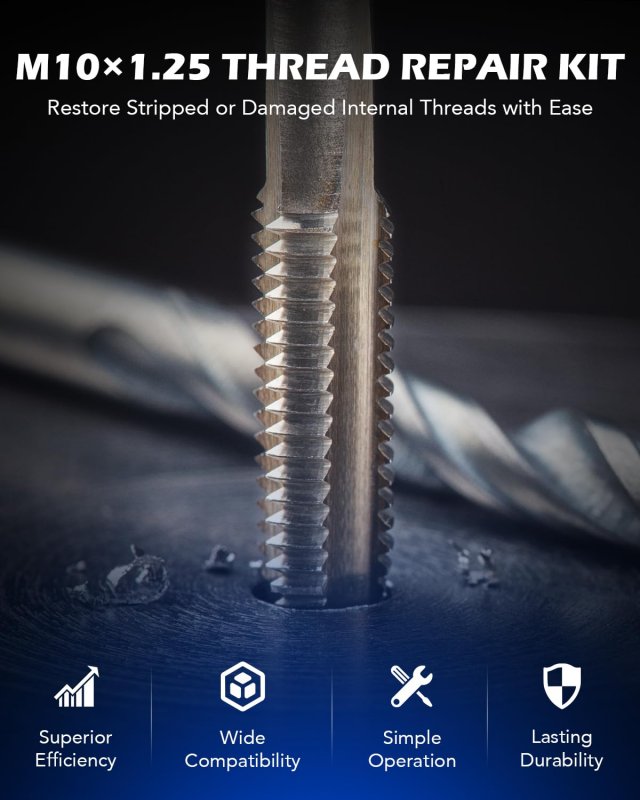Comprehensive Set: Effortlessly restore stripped, damaged, and worn internal threads using Orion Motor Tech's M10x1.25 helicoil thread repair kit. The set includes 15 thread inserts, installation and breaking tools, a screw tap, drill bit, and hex wrench to cover all your needs.. Wide Application: This thread repair set is engineered to effectively handle tasks across a variety of materials, including aluminum, iron, carbon steel, bronze, and magnesium.. Easy to Use: The 135 drill bit quickly creates room for the installation tool to smoothly fit the insert that repairs your old threading, and the breakoff tool cleans things up for use.. Premium Material: The drill bit in this thread repair tool set is constructed from high-speed steel for superior handling with your drill, while each insert is made of 304 stainless steel for greater strength and longevity.. Storage Case Included: The included carry case ensures hassle-free transport and organized storage for your convenience between jobs..Other fine products