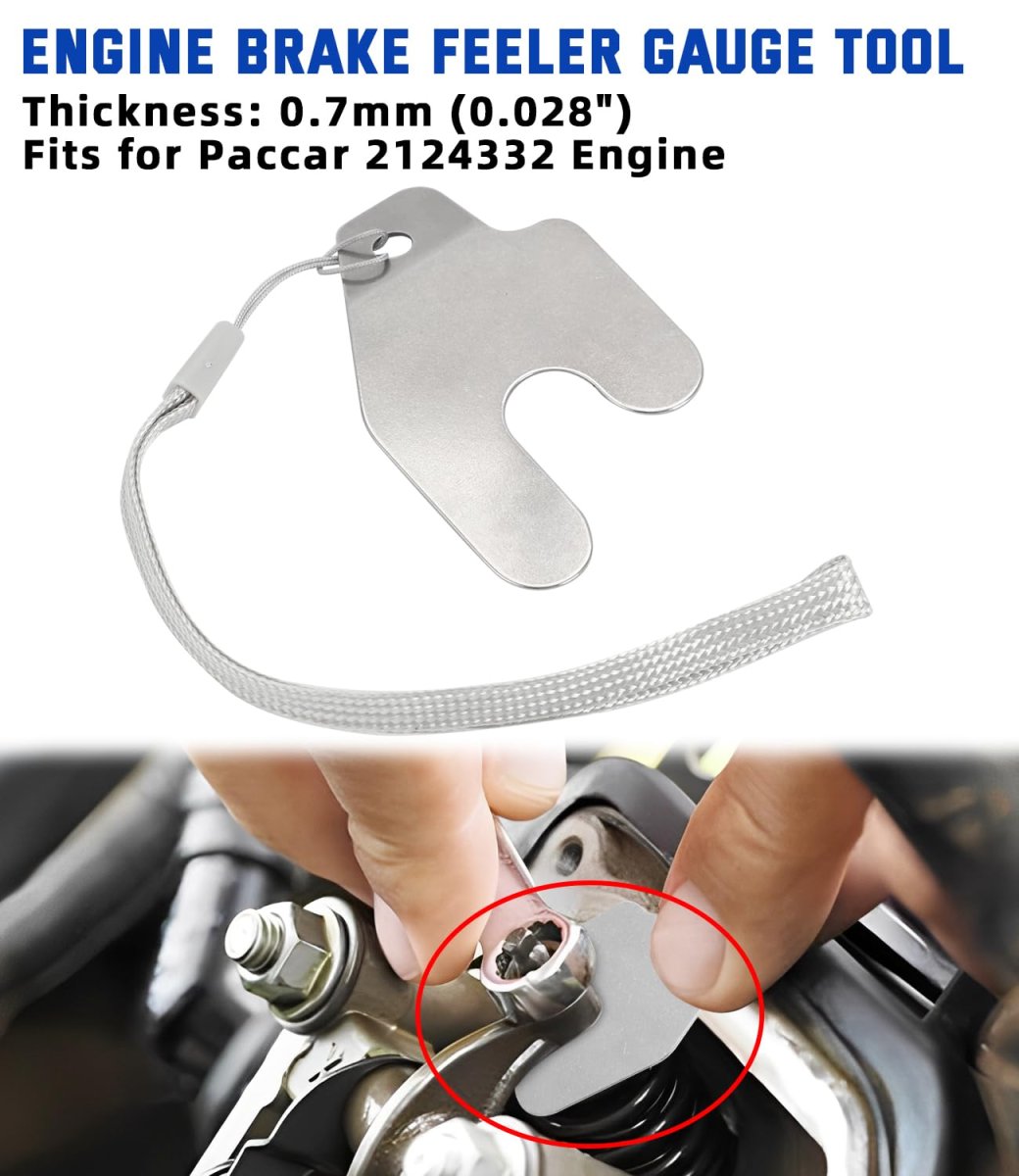 [FITMENT] The engine brake feeler gauge tool fits for Paccar 2124332 Engine. [USAGE] Used for valve adjustment process, this engine brake feeler gauge tool can help to adjust the gap between the engine brake blades and the engine exhaust valve, providing appropriate clearance to ensure vehicle braking and deceleration. [MATERIAL] This gauge tool is made of high-grade iron material that has high strength and long durability, its wear resistant, lightweight and easy to carry and store, will provide a long term service. [EASY TO USE] Easy to use, insert the engine gauge tool between the engine blades and the value, and adjust the value to get the appropriate clearance.Other fine products
