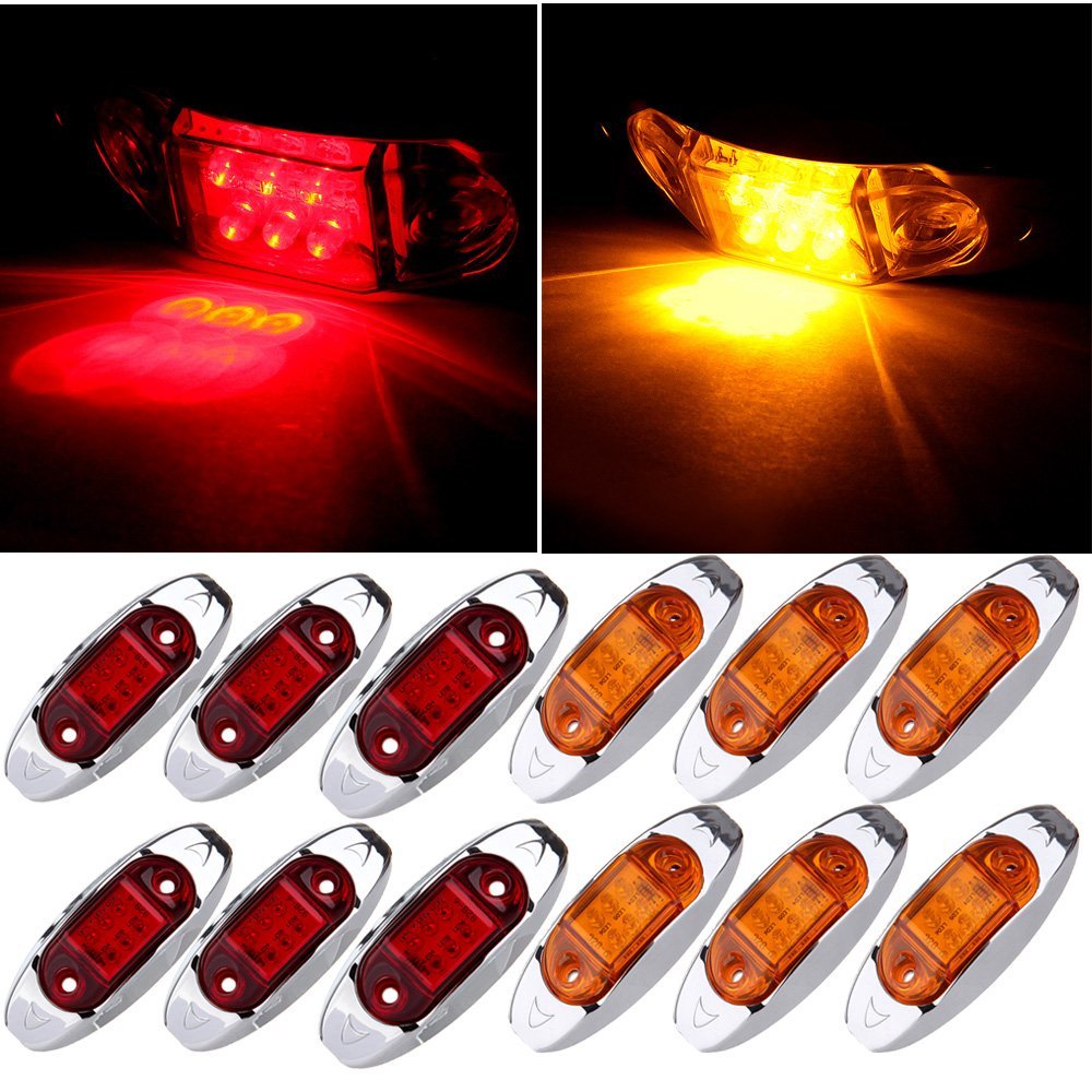 - Pack Of 12 Amber Red Waterproof 6 Diode Oval Lens Led Side Marker Light Lamp 12v Truck Trailer