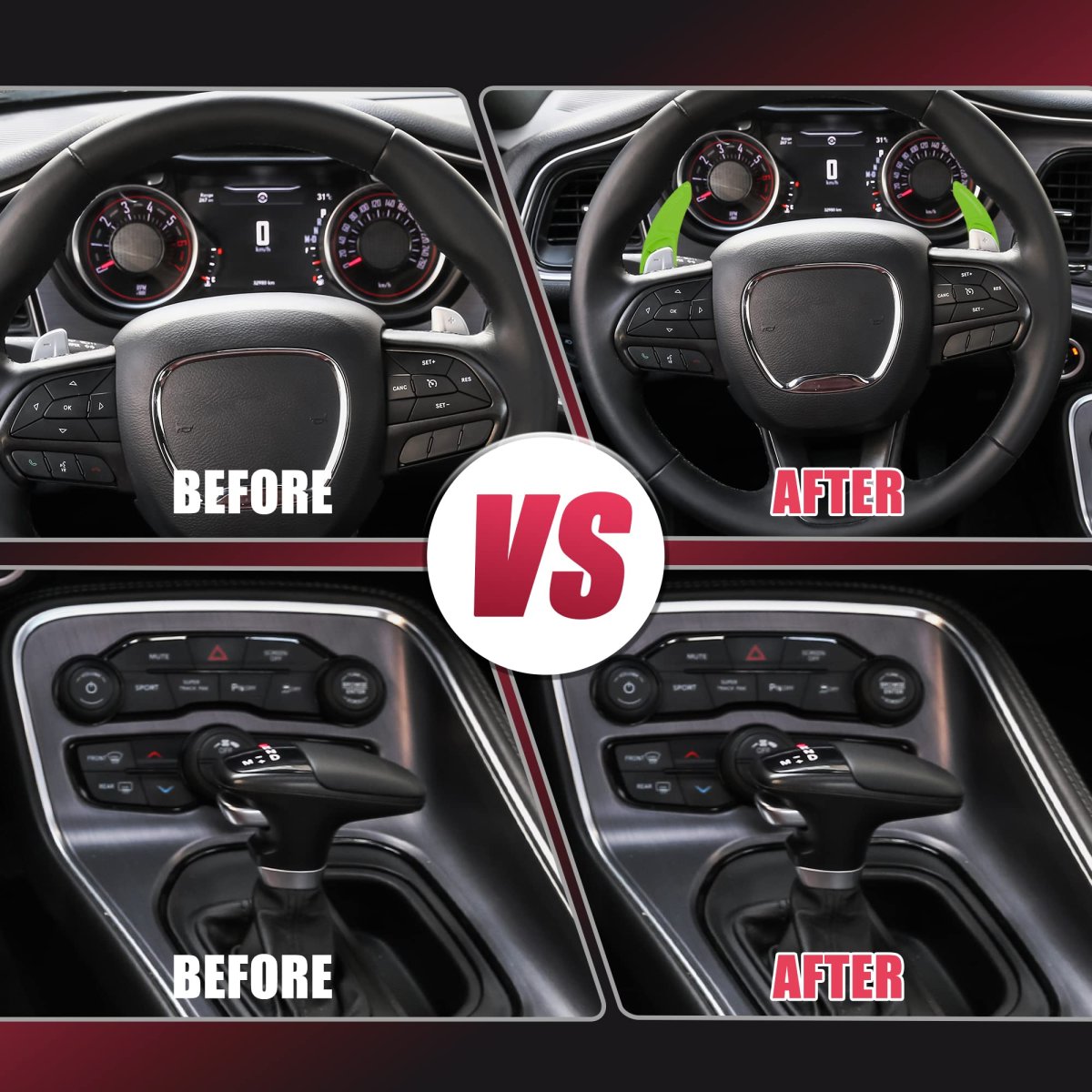 Fitment: for Dodge Challenger 2015-2021, for Dodge Durango 2014-2020, for Dodge Charger 2015-2021.. Direct fit: The paddle shifter extension is a good match for Dodge, a design based on the original car.. Material: The paddle shifter extensions are made of aluminum alloy, anti corrosion, long service life.. Interior Decoration: Decorate your car interior with a fashionable style, making your car particular and unique.. Easy Installation: Just clean the surface and peel off the paper on the back, then stick the cover on and press it for at least 30 seconds when the temperature is lower than 15 degrees celsius..Other fine products