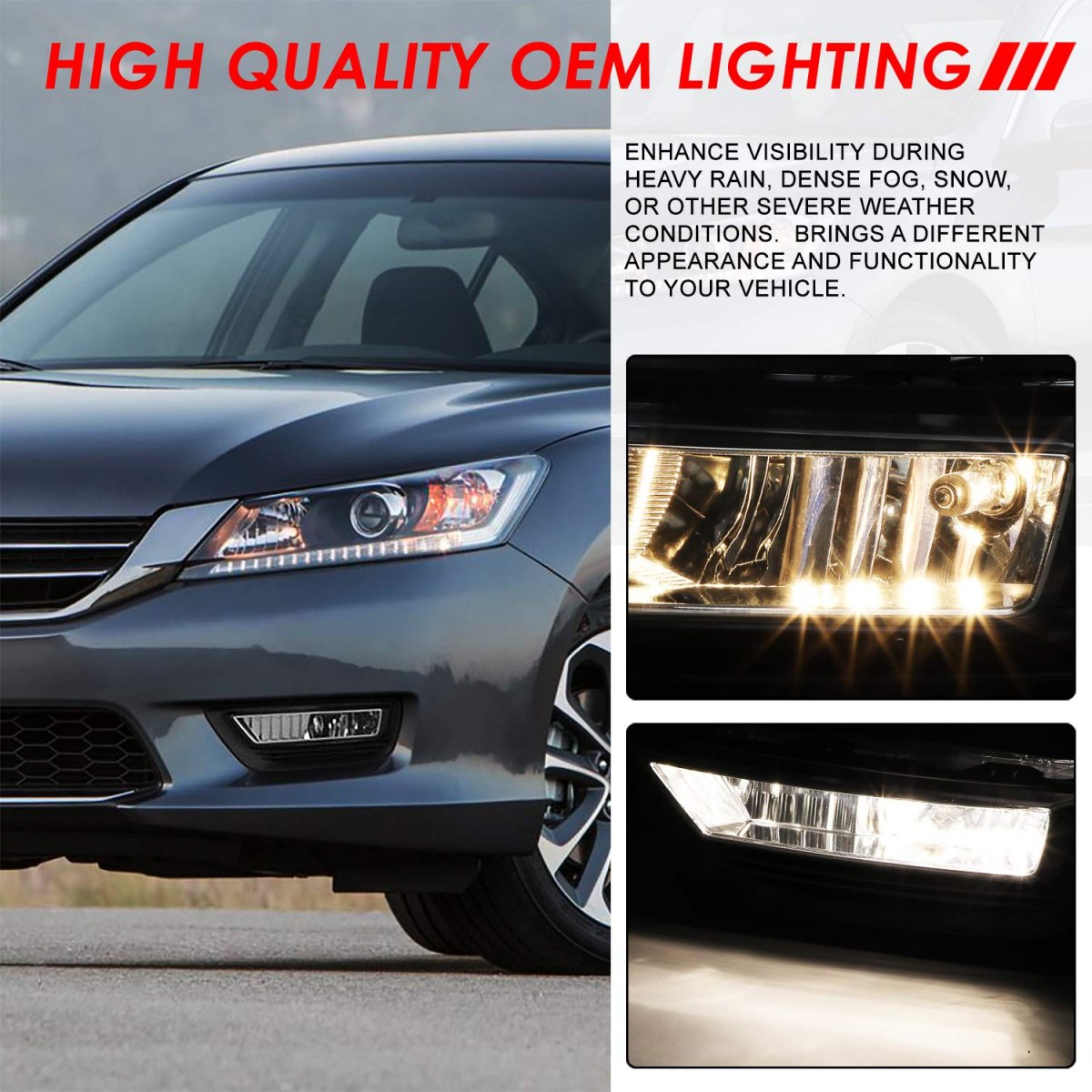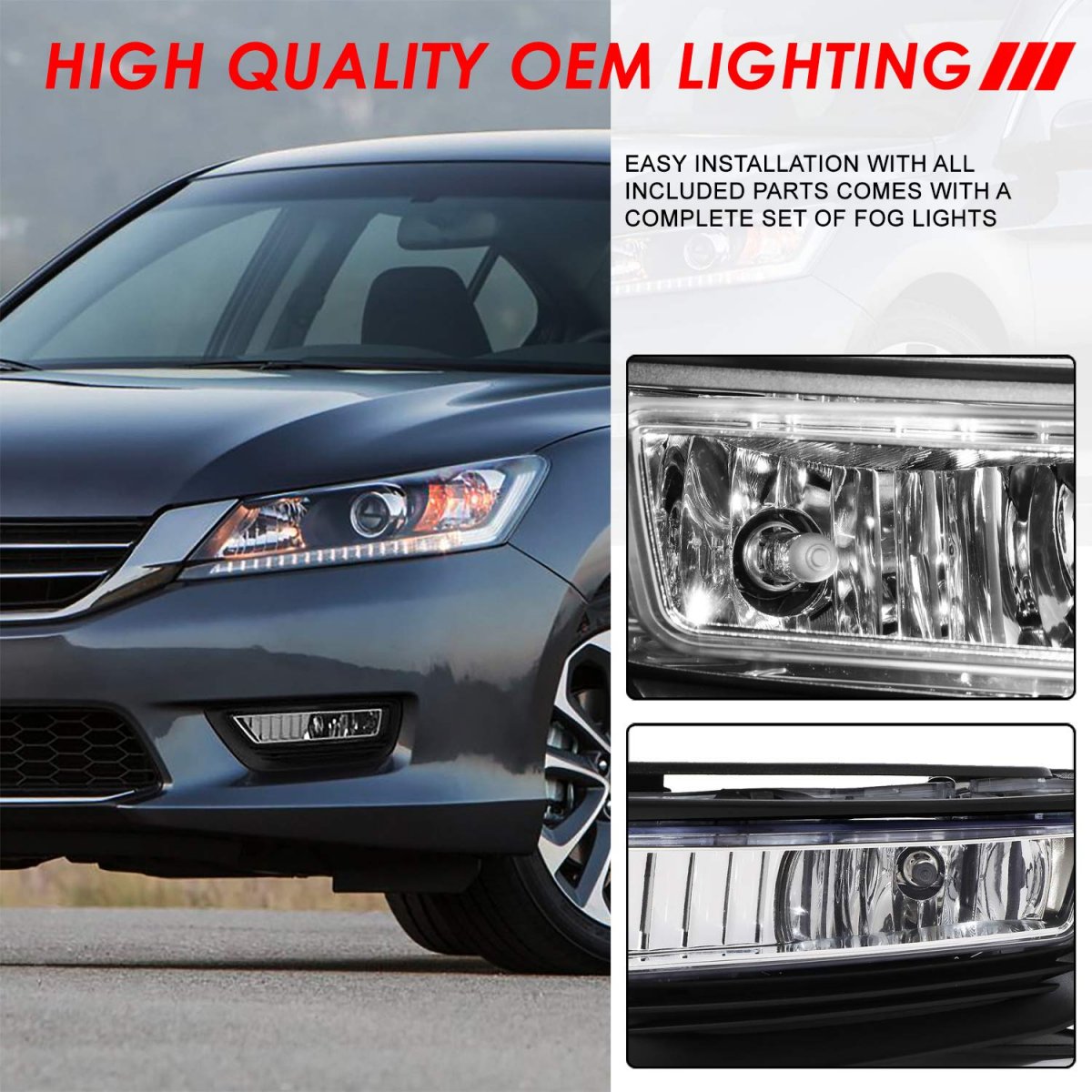 Compatible with 13-15 Honda Accord Sedan. Factory Style Fog Lights w/Halogen, Enhance Visibility During Night Time, Heavy Rain, Snow, or Dense Fog. Weatherproof and Durable Quality, Great for Show Use or to Replace Old and Worn Fog Lights. Uses H8 Halogen Bulbs, Light Bulbs are Included. Comes with a Complete Fog Light Set, which Included with Driver (Left) & Passenger (Right) Side. Plug-n-Play Operation, Direct Bolt-On OE Fitment or Replacement for the Stock Unit.Other fine products