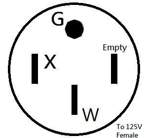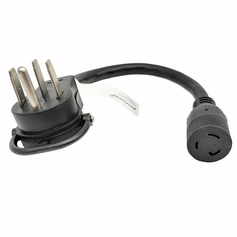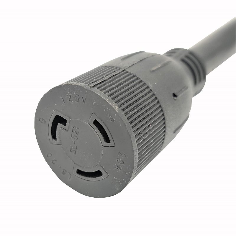 NEMA L5-20 female connector. Camper 4-prong 14-50 male plug with handle.. Molded with electroplate copper terminal in order to avoid surface oxidation effectively.. Used STW 10AWG/3C stranded conductor inner wire, support max 30 AMP loading.. Twist Lock L5-20 plug charge from 14-50 outlet, Heavy-duty 100% copper wire conductor inside.. Length : 18 inch (1.5 foot). Color : Black.