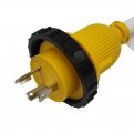 Electrical Vehicle 14-50 plug charge from 10-50 power adapter cord, 50A, 250V. Dryer 3-prong, 50A 10-50 male plug, right-angle type. NEMA 14-50 Receptacle female, right-angle type, with handle and neon-light.. Pins and terminals are made with nickel-plated brass to prevent oxidation rust.. STW 6AWG/3C cable with outdoor PVC jacket and stranded conductor inner wire, support max 50 AMP overload.. Heavy-duty 100% copper wire conductor inside, Length : 18 inch.Other fine products
