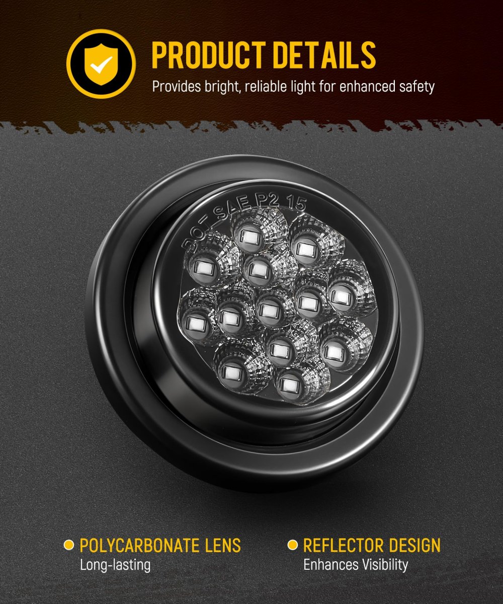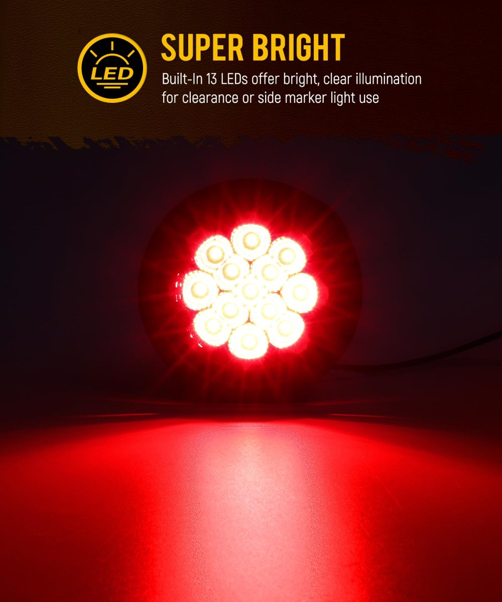 [Super Bright] Built-In 13 LEDs offer bright and clear illumination for clearance or side marker use. Reflector design enhances visibility without the need for additional reflective tape. [IP65 Waterproof ] IP65 rated for dust-proof and waterproof performance, Protects internal components from water, dirt, and corrosion. [Easy Installation] The 2.5 inch round led marker light comes with 2-prong plugs for easy 12V DC wiring, white=ground, black=positive. [Wide Application ] Universal for almost 12V vehicle,such as semi trucks,trailers, flatbeds, box trucks, utility and service vehicles. [Package Include] 10x 2.5" Smoked Lens Red LED Marker Lights.Other fine products