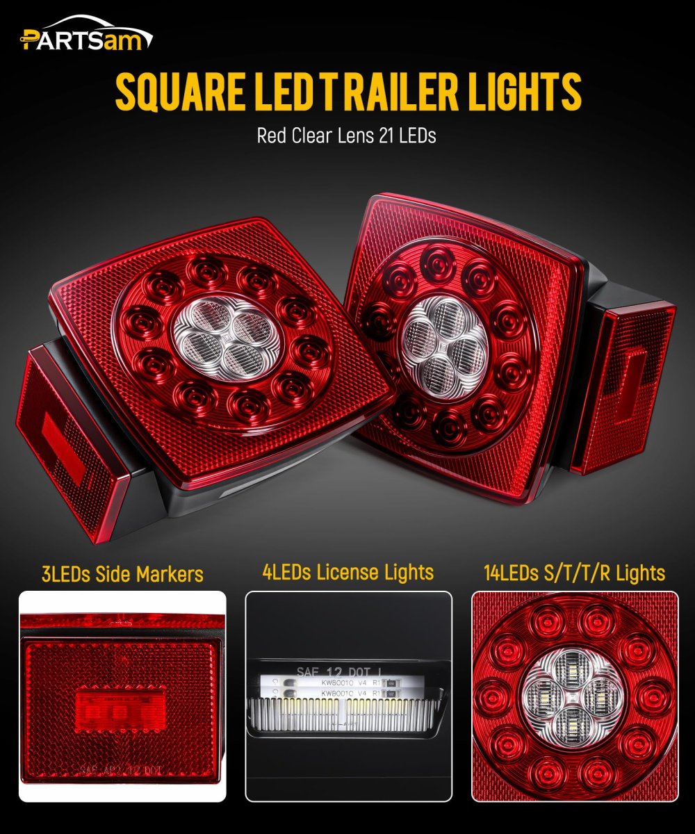 - Partsam 12v Submersible Square Led Trailer Lights Red White Stop Turn Tail Reverse Backup License Side Marker Running Light