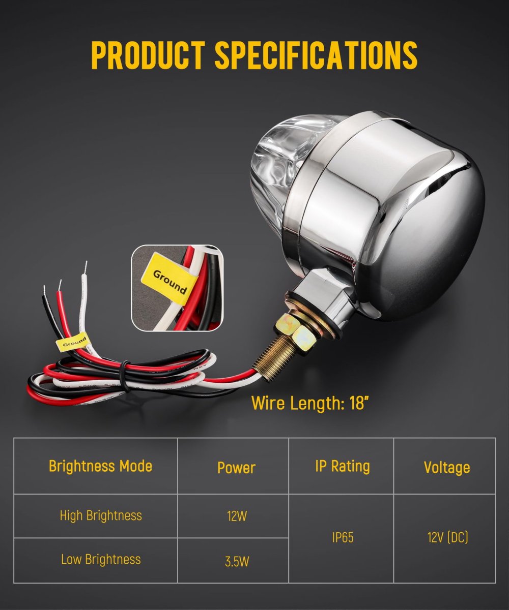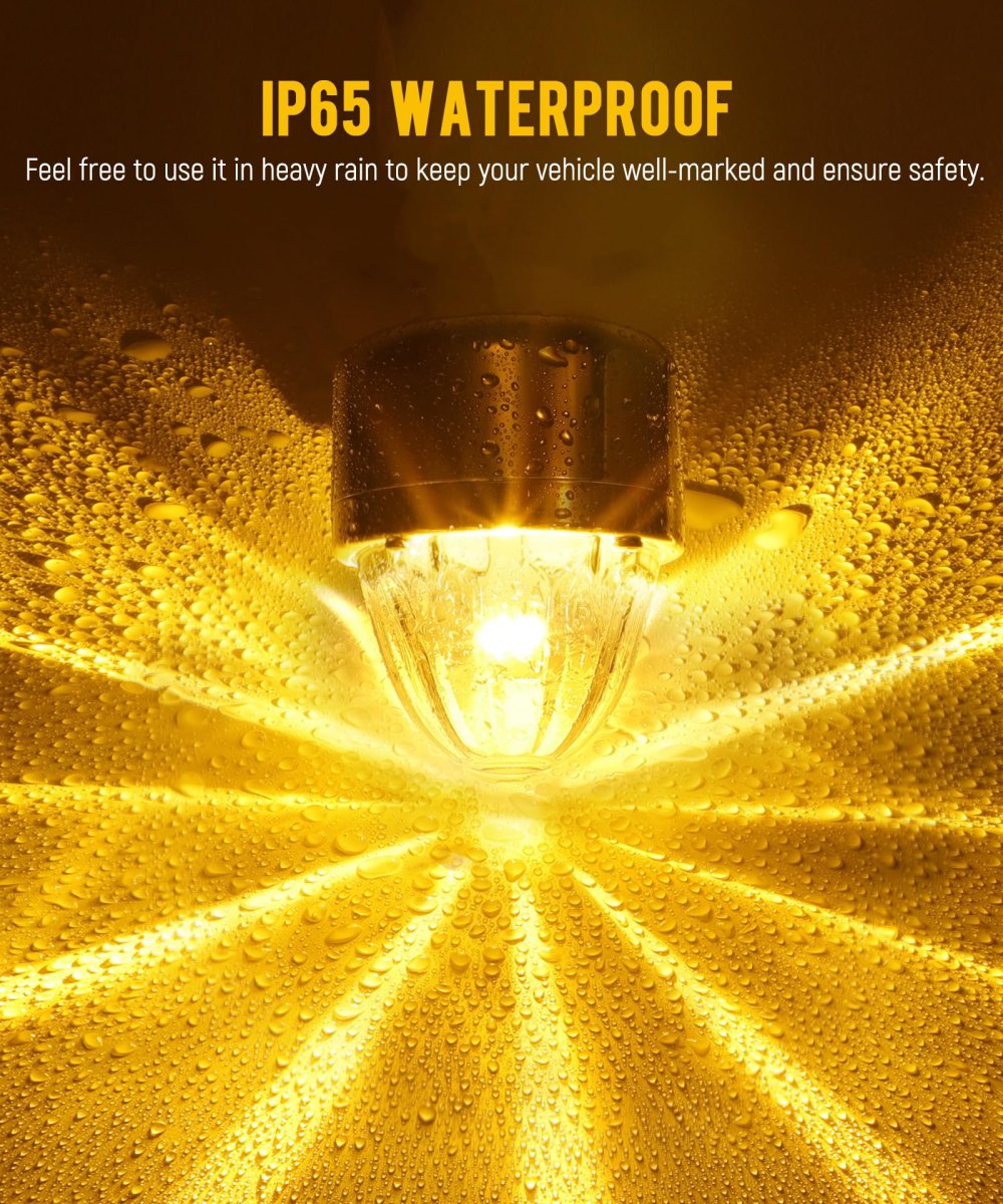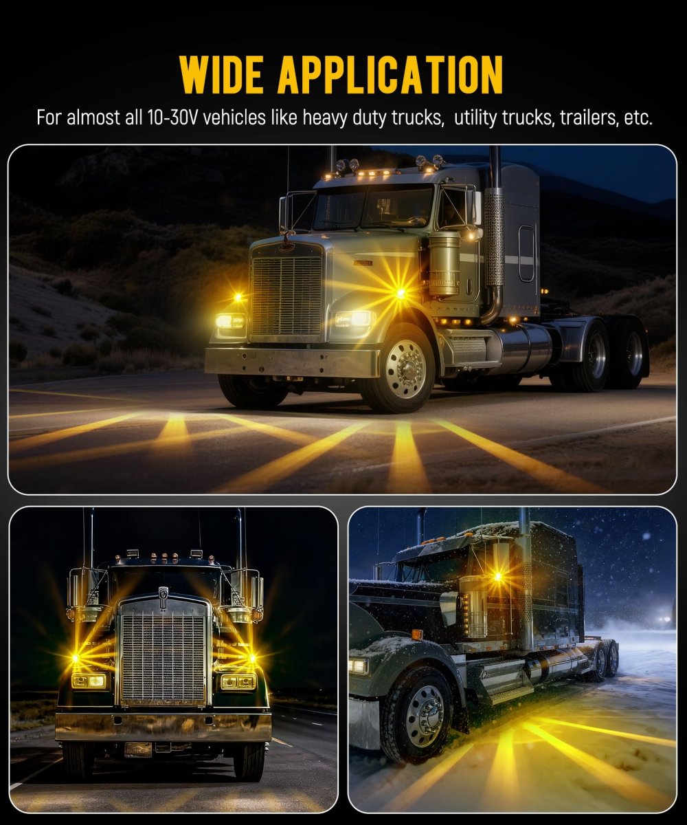 Enhanced Visibility: Custom high-powered LEDs emit a bright starburst pattern; the glass lens enhances sharpness and detailed light lines for improved visibility, featuring zinc alloy bezel and chrome-plate housing. Versatile mounting options allow for 90 or 180-degree adjustments. Easy Installation: Simple 3-wire connection (white = ground, black = front amber rear red dim for marker light, red = front amber rear red full intensity for stop/brake/turn signal) ensures hassle-free setup. Dimensions: 5.3" height, 3.4" length, M12 bolt. Universal Compatibility: Compatible with 10-30V trucks, including Peterbilt, Freightliner, and semi trucks; ideal for bumpers, marker lights, roof, grille, tailgate, trailer rear, under-cab, and more. IP65 Waterproof: Glass lens with zinc alloy housing protects against water, sand, dust, rain, snow, and more, ensuring safety and clear visibility. Complete Package: Includes 1 amber LED single-face glass watermelon light with zinc alloy housing, clear lens, with M12 bolt for immediate installation.Other fine products