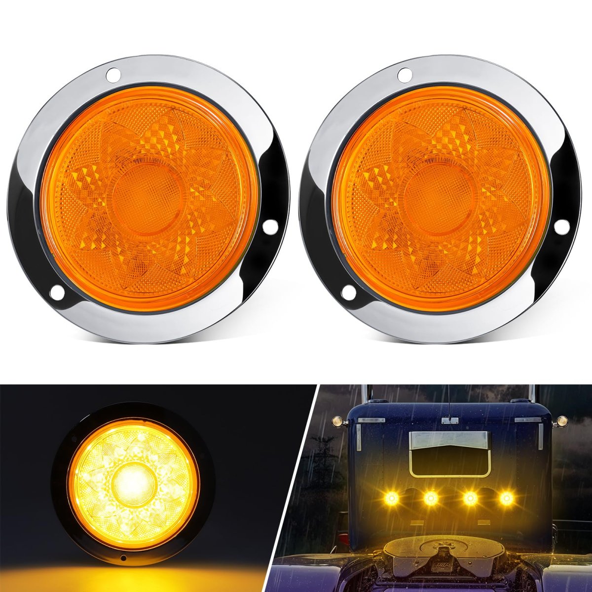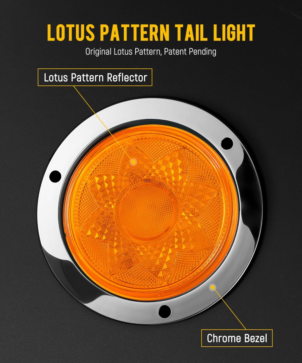 - Partsam 2pcs 4 Inch Round Led Trailer Lights Yellow Amber Lotus Pattern With Strobe Function Warning Turn Signal Running Tail