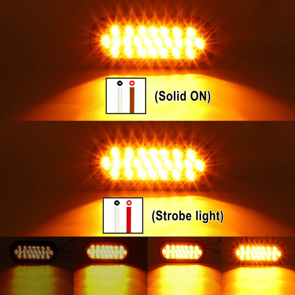 - Partsam 2pcs 6 3 Led Oval Amber Strobe Lights 24led Recessed With Triple Flash Patterns For Truck Towing Trailer Lamps Rubber