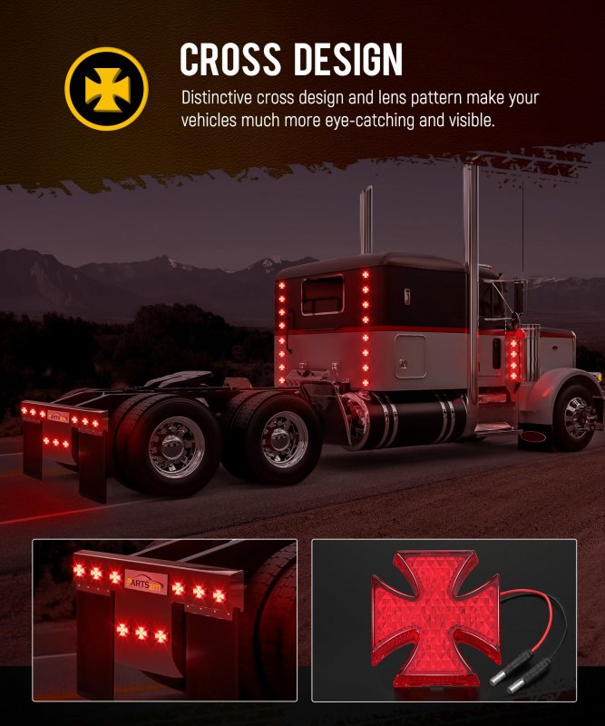 [Awesome Light] Built-in 12pcs LEDs, emit super bright light, You can mounted it on rear, sides, or along the edge of the vehicle body, improving safety for day and night driving. [Cross Appearance Design] Distinctive cross design and lens pattern make your vehicle much more eye-catching, further enhancing vehicle's visibility to other drivers;. [IP67 Waterproof] Completely waterproof design, the entire light is fully sealed so that it will be free of water ingression, can withstand prolonged exposure to water and moisture;. [Wide Application:] The Cross LED marker lights are fit for most 12V-24V vehicle, commonly used on trailer,truck, RV, motorhome, camper or other commercial vehicles etc;. [Easy Installation] With bullet plug, plug and play. Quick install and uninstall constructuredon't worry about the lamp falling off at allblack wire is negative, red wire is positive;.Other fine products