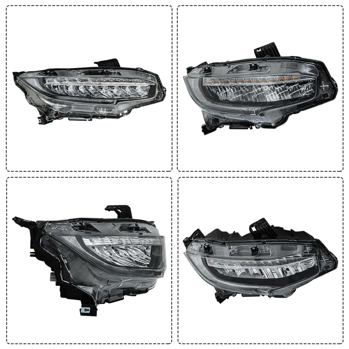 Replacement for Civic 2016 headlight assembly. The headlights have better brightness and a more sturdy structure, allowing your car to adapt to safe driving on the road. The headlights can prevent moisture from accumulating inside the housing, so there will be no moisture problem in various weather conditions. The headlight structure is simple, the internal support structure is safe and reliable, and the service life is long. The appearance of the headlights is beautiful and fashionable, with good decorative effects that increase attractiveness.Other fine products