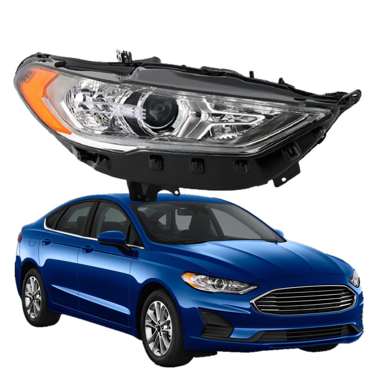 This halogen projector headlight DRL replacement for Fusion 2017 2018 2019. (Attention: Not compatible on models w/ factory headlight). This headlights allow you to see the road in front of you clearly during the night and in any bad weather that may arise. Special housing is re-sistant to water, impact, and corrosion, long lasting and durable. Quick and easy installation, no modifications, direct replaces your stock ones. Comes with 1pc passenger side headlight.Other fine products