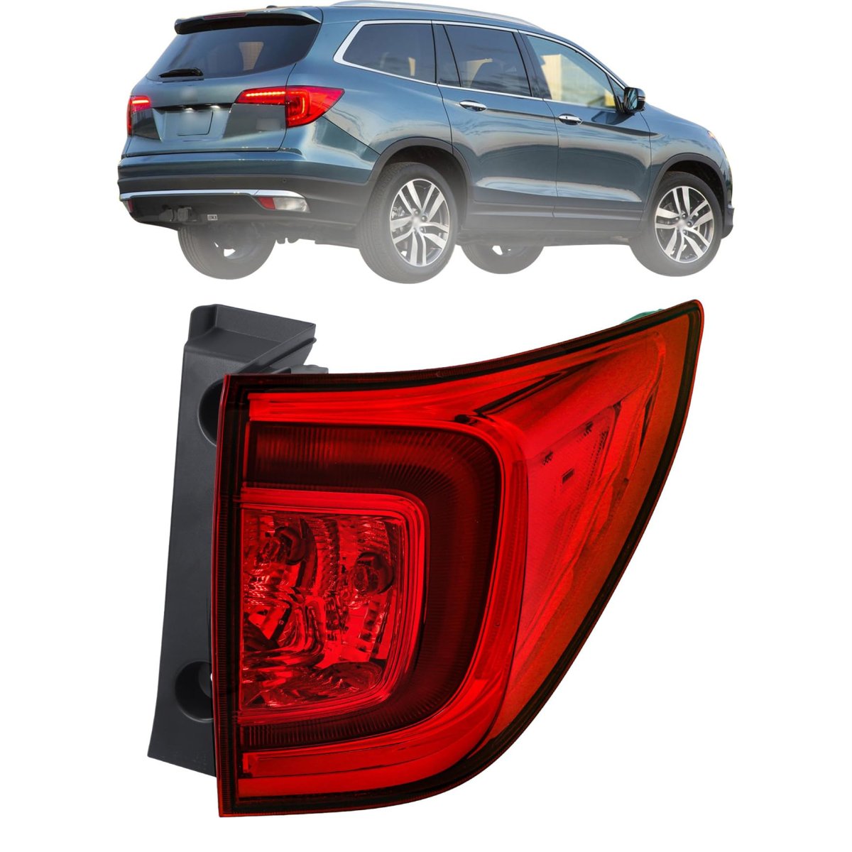 Vehicle Compatibility: Replacement for Pilot 2016-2018 Passport EX-L Elite 2022-2023 halogen rear tail lamp light RH 33500TG7A01 HO2805107. Well Sealed Construction: Made of premium materials, the edges and back are well sealed, keep lighting in rain or snow. Luminance: The rear taillights are made of ABS plastic materials, clear and red lens provide bright red color, It is well constructed and provides better lighting to ensure a comfortable and pleasant driving experience. Enhance Driving Security: Tail lights provide better visibility. At night, you allow others to judge the width of your vehicle from a greater distance. If you often drive on unlit roads, this could mean a big improvement in your secure driving. Installation: Plug and play installation. No installation guide or instruction included, professional installation is highly recommended.Other fine products