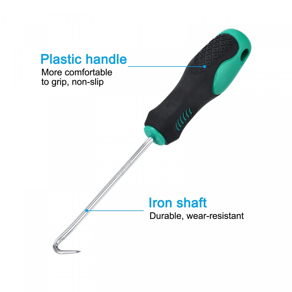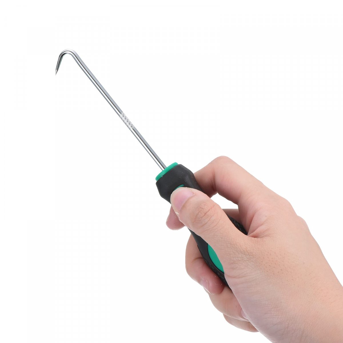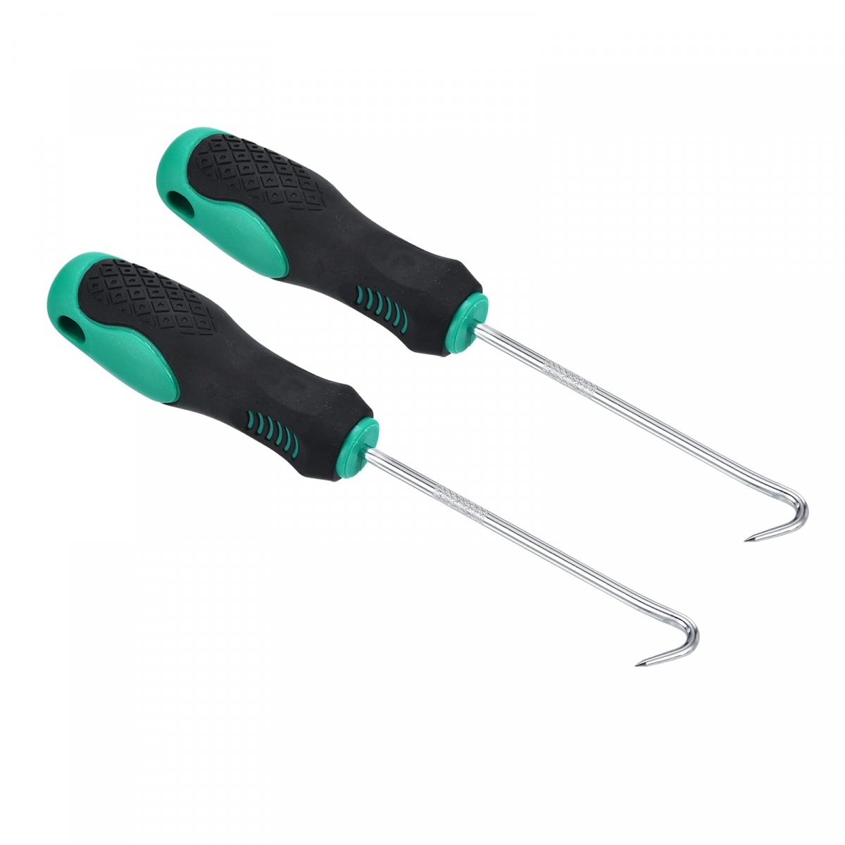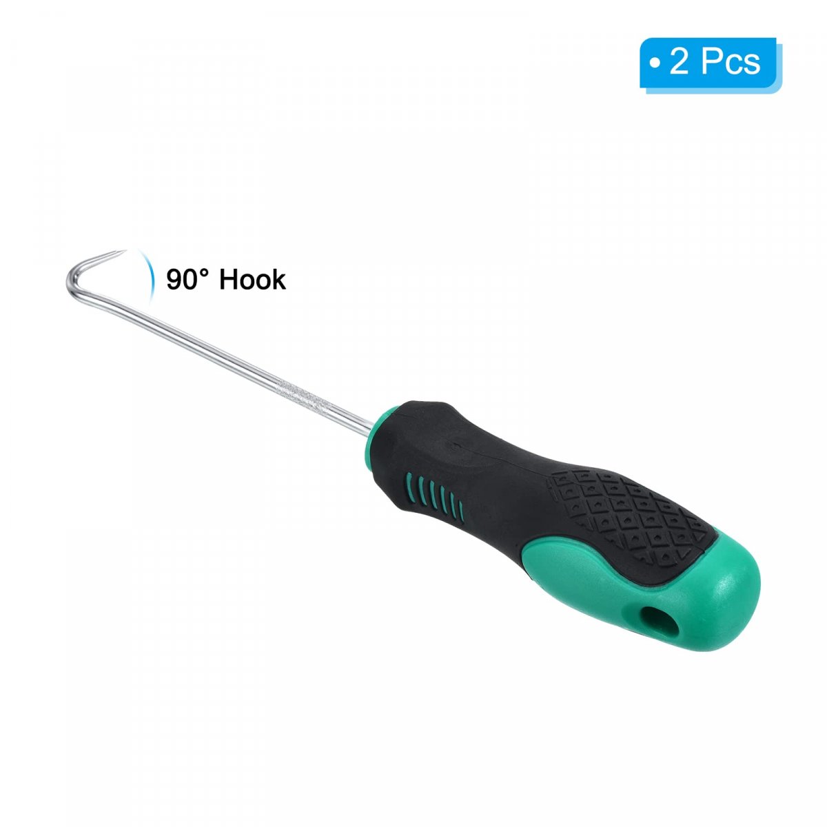 Rod Diameter: 3.5mm / 0.14 inch; Handle Length: 90mm / 3.54 inch; Total Length: 180mm / 7.09 inch; Package Content: 2 x 90 Hooks. Advantage: The iron shaft with electroplating treatment is durable and wear-resistant. The sharp tip and fine point allow for precise maneuvering and easy removal. Ergonomic plastic handle integrated molding, more comfortable to grip, non-slip. Application: The 90 degrees hook is designed for removing and installing O-rings and other small components in tight spaces, such as cylinder heads, engine blocks, and transmission housings. An essential tool for mechanics, technicians, and DIY enthusiasts who need to work on other machinery with hard-to-reach places. Instruction: Select the appropriate size hook or pick for the O-ring/seal needed to remove. Insert the tip into the gap between it and its housing. Gently lever it out of its housing, working your way around the perimeter until it is completely removed. Notice: Use caution when inserting and levering the tool to avoid damaging surrounding components. Wear protective gloves to prevent hurting your hands. Always ensure they are clean and free of debris before use. Store safely in a dry place.Other fine products