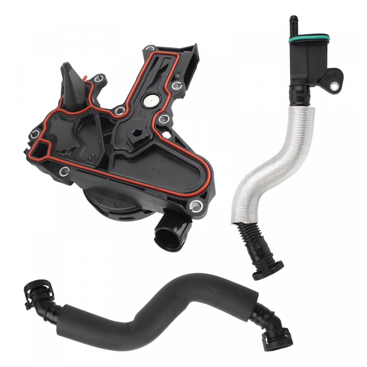 Replace Part Number: 06H103495, 06H103495B, 06H103495A, 06H103495E, 06H103495AC. Fits for Audi A3 (8P1) 1.8/2.0 TFISI 2003-2013; for Audi A3 1.6TDI 2.0 TFSI 2008-2013; for Audi A3 Sportback 1.8/2.0 TFSI 2004-2015; for Audi A4 1.8/2.0 TFSI 2007-2015; for Audi A4 Allroad 2009-2016. Fits for Audi A4 Avant 2007-2015; for Audi A5 1.8/2.0 TFSI 2007-2017; for Audi A5 1.8/2.0 TFSI 2009-2017; for Audi Q5 2.0TFSI 2008-2017; for Seat EXEO 1.8/2.0 TSI 2008-up. Fits for Skoda OCTAVIA II 1.8 TSI 2.0 RS 2004-2013; for Skoda OCTAVIA II 1.8 TFSI 2.0TSI 2004-2013; for Skoda SUPERB II 1.8/2.0 TSI 2008- 2015; for Skoda SUPERB II 1.8/2.0 TSI 2009- 2015; for Skoda SUPERB II 1.8/2.0 TSI 2009-2010. Package Include: 1x PCV Crankcase, 2x Ventilation Hose.Other fine products