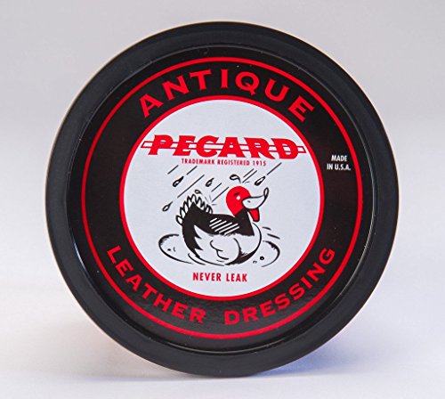 This dressing shows its conditioning potentialon leather thats older than the 1970s. Notethatonce leather is cracked there is no way to fix the leather fibers. Cracking and flaking is due to loss of natural oilsover time causing the leather fibers to shorten and stiffen. Oils in thePecard Antique Leather Dressing return this essential requirementto the leather, allowing the fibers to perkup and prevent further damage. Pecard Antique Leather Dressing can also be applied to new oil tanned leather to repel harmful dirt and water. This specialty formulated blend of waxes includes beeswax,USP Grade Petroleum products andcontains NO animal fat or tallow, mink oil, lanolin, or neatsfoot oil. May darken leather a shade but not significantly. Not recommended for Suede or NuBuck leather. Features: Rejuvenates antique leather, restoring flexibility&reviving color Prevents further damage, cracking or flaking Safe and gentle for even the oldest of antiquities.Other fine products