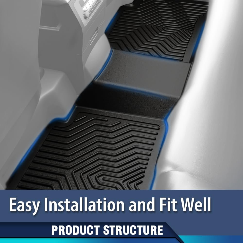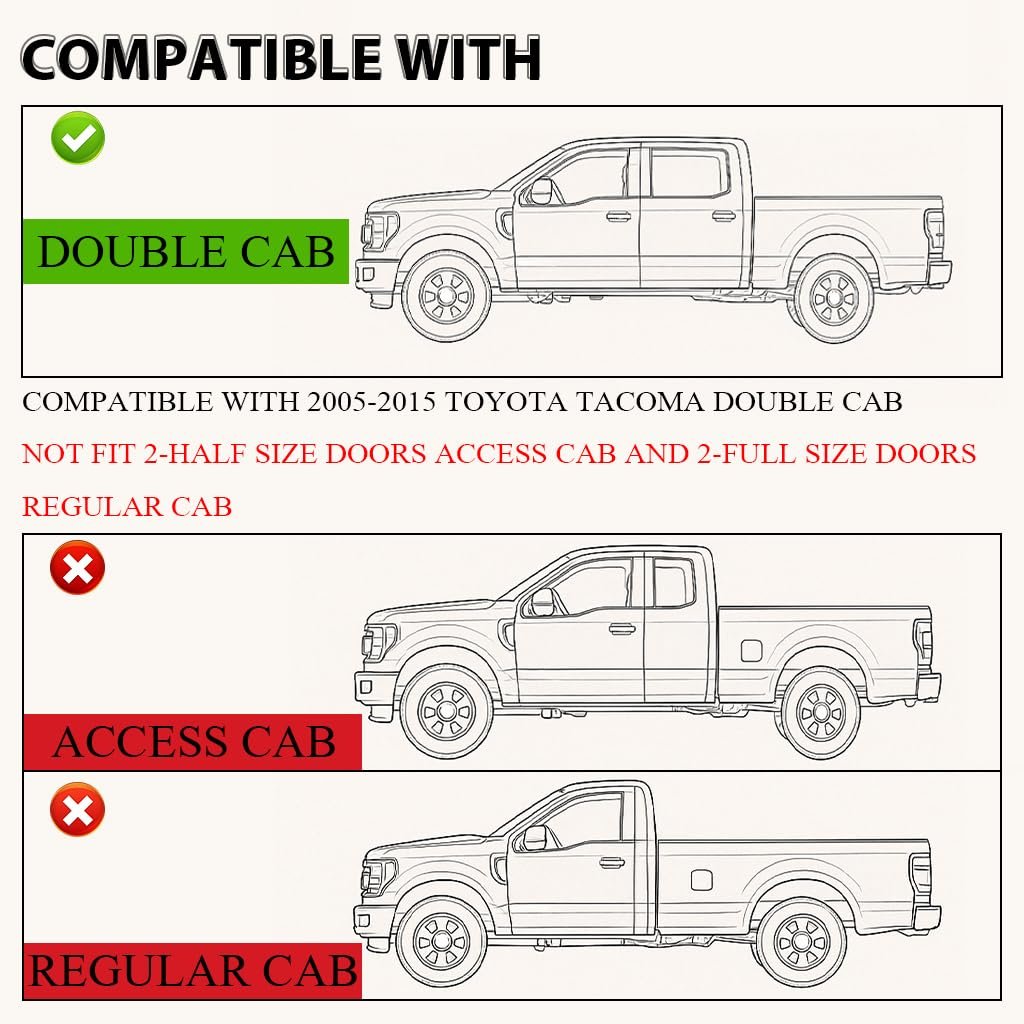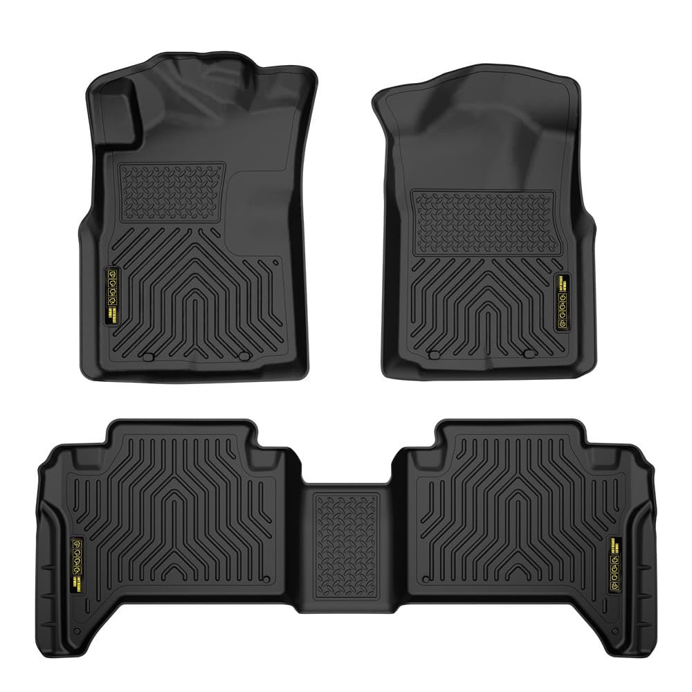 FitmentFloor Mats Compatible with Nissan Frontier Crew Cab 2008 2009 2010 2011 2012 2013 2014 2015 (Not fit 2-Half Size Doors Access Cab and 2-Full Size Doors Regular Cab). ThickPremium TPE automotive floor mats; 3-piece set includes 2 front mats & second row liner. Non-slipGrips on the surface grooves provides robust foot traction, while rubber spikes on the underside ensure non-slippery stability. DependabilityThe fit toyota tacoma floor cargo liners, are suitable for -20 to 75 degree environments. And it won't crack, split or bend in harsh weather conditions. Highly conformableThe floor mats stay firmly in place during aggressive driving, acceleration, or braking. All-weather protectionThe all weather car floor mats liners fit toyota tacoma protect agaist spills, debris, rain, snow, slush, mud, etc. All TPE materialOur floor mats,fit toyota tacoma, combine the qualities of rubber(high elasticity) and plastic(easy to process). It comes with GRS certification issued by the Intertek.Other fine products