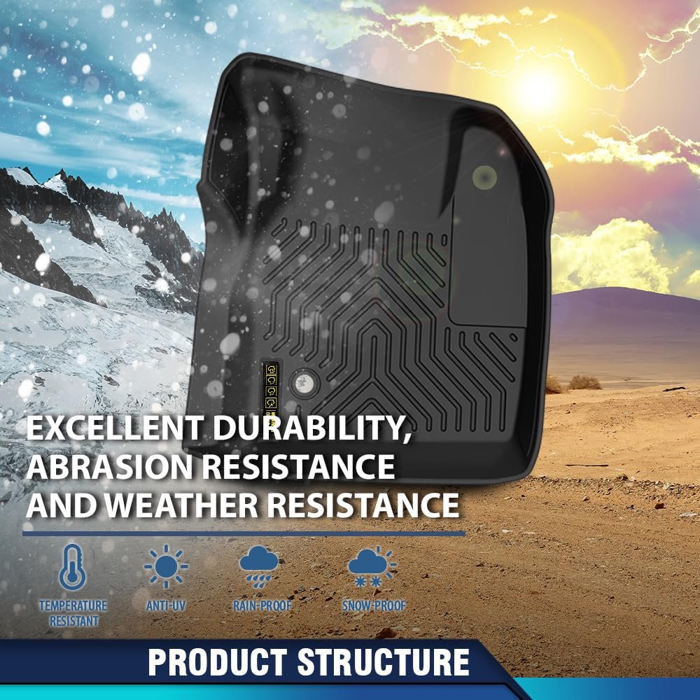 FitmentFloor Mats Compatible with Chevy Traverse 2018 2019 2020 2021 2022 2023 2024. ThickPremium TPE automotive floor mats; 4-piece set includes 2 front mats & second row liner & 3rd Row Car Liners. Non-slipGrips on the surface grooves provides robust foot traction, while rubber spikes on the underside ensure non-slippery stability. DependabilityThe fit chevy traverse floor cargo liners, are suitable for -20 to 75 degree environments. And it won't crack, split or bend in harsh weather conditions. Highly conformableThe floor mats stay firmly in place during aggressive driving, acceleration, or braking. All-weather protectionThe all weather traverse car floor mats liners fit chevy protect agaist spills, debris, rain, snow, slush, mud, etc. All TPE materialOur floor mats,fit chevy traverse, combine the qualities of rubber(high elasticity) and plastic(easy to process). It comes with GRS certification issued by the Intertek.Other fine products