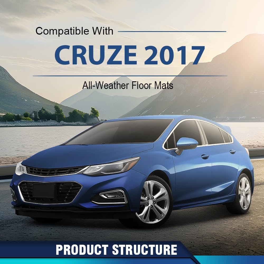Vehicle Compatibility - Floor Mats Liners Compatible with Chevy Cruze 2017. Anti-Slip - The edges of the floor mat have raised and deep grooves, which have a wider coverage. Even in humid environments, the floor mat has strong grip and will not move easily, effectively preventing the floor mat from slipping off. Outstanding Material - Floor mats made from durable TPE materials that exhibit excellent resistance to wear and scratches, ensuring long-lasting aesthetics. All-Weather Protection Raised edges all the way around have been upgraded to shield your floor from dirt, mud, salt, rain, snow and even hot summer temperatures. Keep your car floor as good as new all the time. Easy To Use & Maintain - When first used, leave the foot mats in the sun for a day or fold them in the opposite direction several times to restore their shape and make them fit the vehicle better. To clean, simply remove the mat and rinse with water or wipe with a rag to restore cleanliness.Other fine products