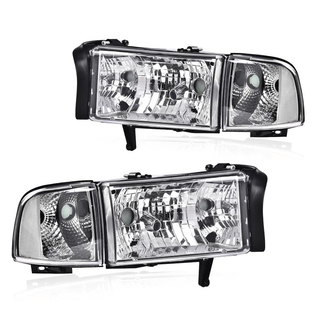 - Pit66 Front Headlights Assembly Headlamps For Dodge Ram 1500 1994-2001 Fit 2500 3500 1994-2002 Clear Lens Chrome Housing