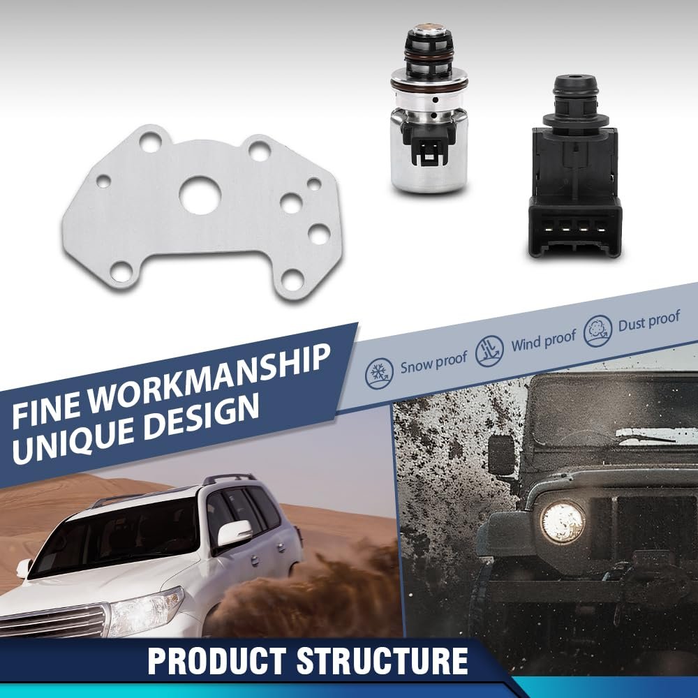 Vehicle Compatibility: Fit Dodge Jeep Chrysler Rear Wheel Drive Overdrive Models A500 A518 A618 42RE 46RE 47RE 2000-On. OE Standard: Meets the Original Equipment (OE) standards, ensuring replacement fit just like the original. Interchange Part Number: D12432A, D12415C, D22958, D22955A. Material: Made of sturdy PA66 + Aluminum Alloy + Steel + Asbestos-Free Copying Board material, designed to withstand various adverse weather conditions, it will not easily fade, crack or warp. Package Includes: 1x Governor Pressure Solenoid (EPC) & 1x Governor Pressure Sensor (Transducer) & 1x Gasket. About Installation: No modification required. Produced under strict quality control standards, it can be installed directly. Professional installation is highly recommended.Other fine products