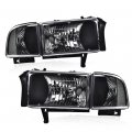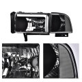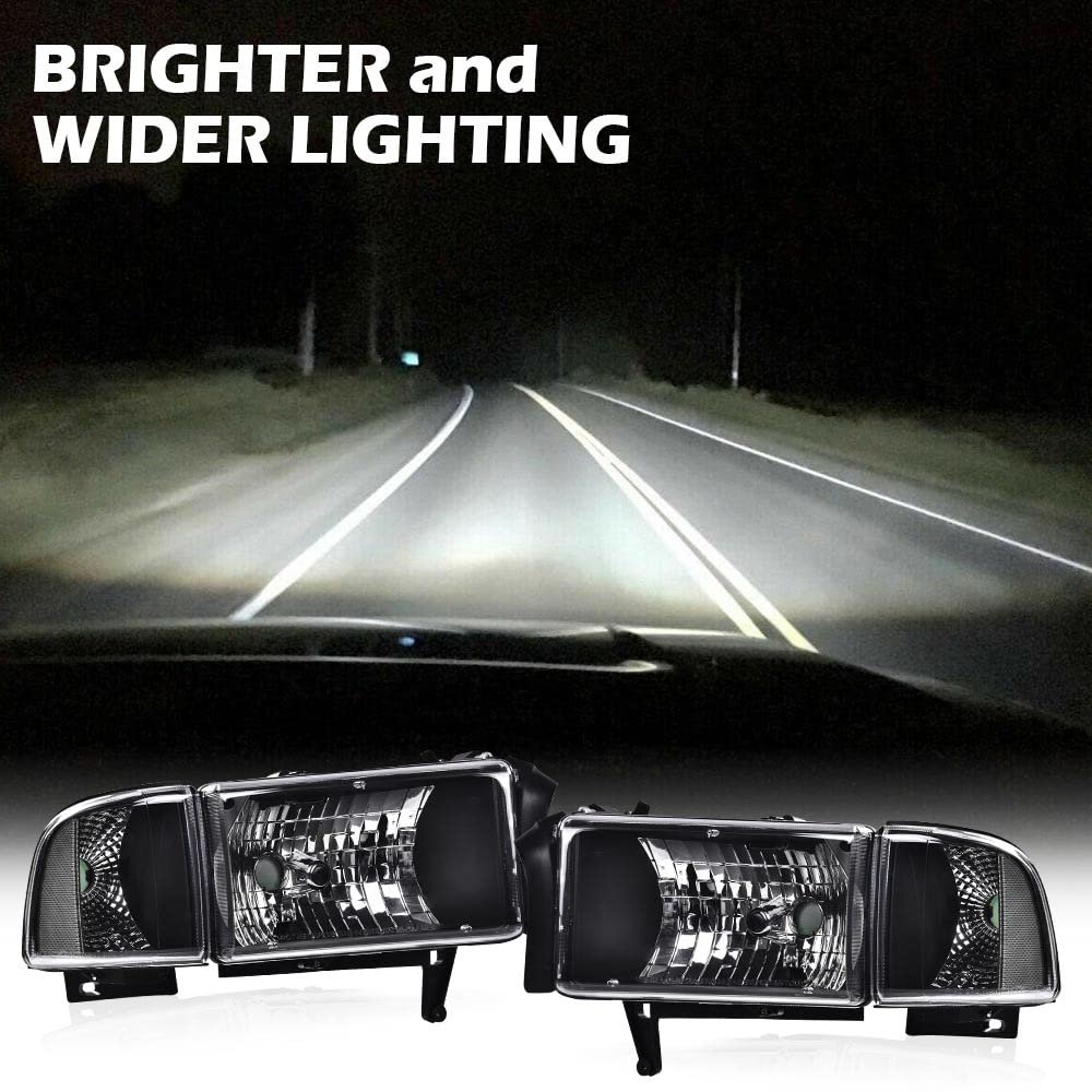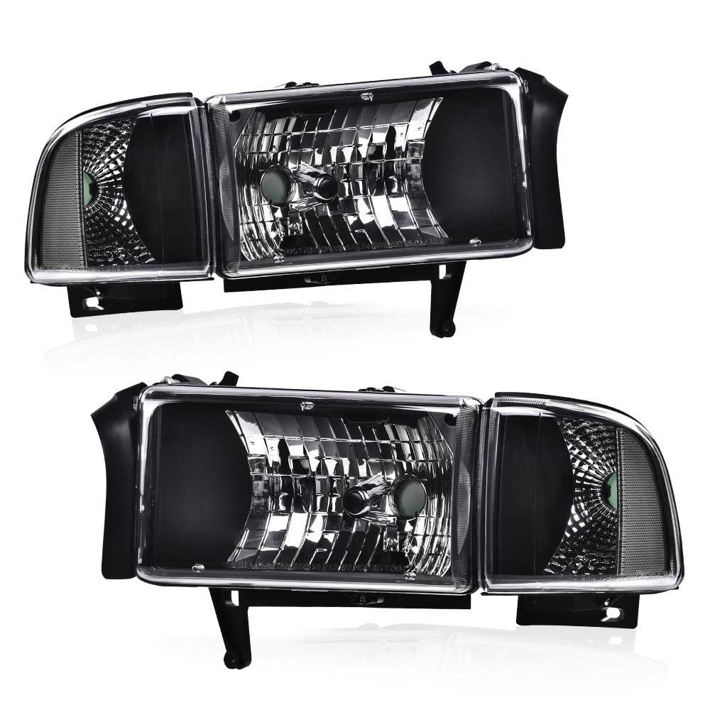 Pit66 Headlights Headlamps Assembly 1 Pair For 1994-2002 Dodge Ram 1500 2500 3500 Clear Lens Black Housing Amber Reflector
