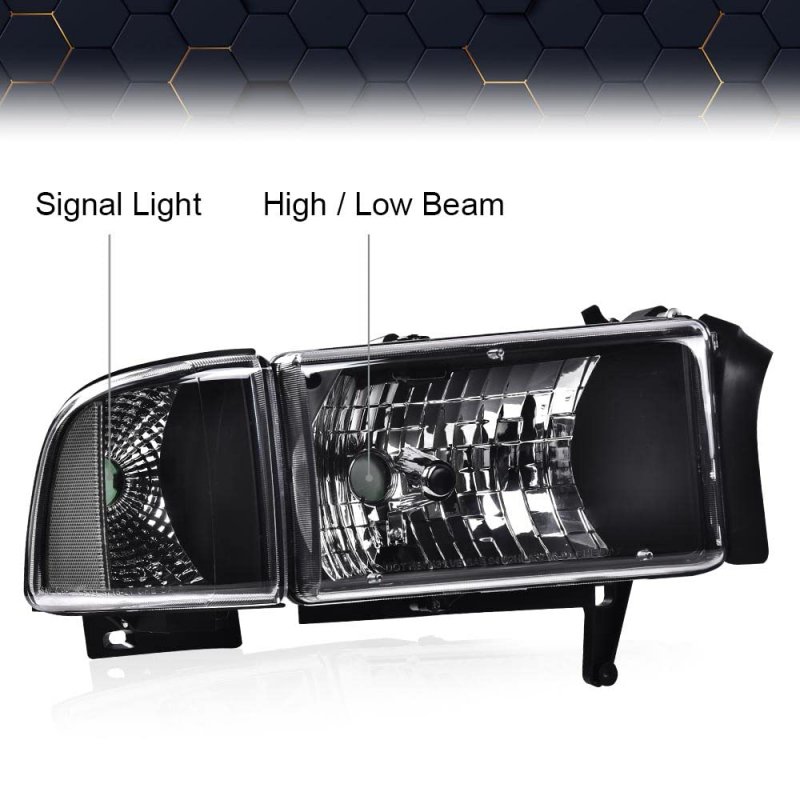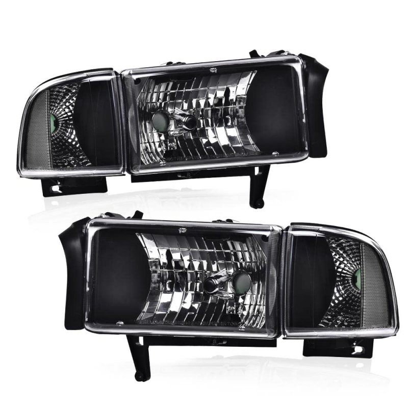 - Pit66 Headlights For 1994-2002 Dodge Ram 1500 2500 3500 Headlamps Assembly Clear Lens Black Housing Reflector