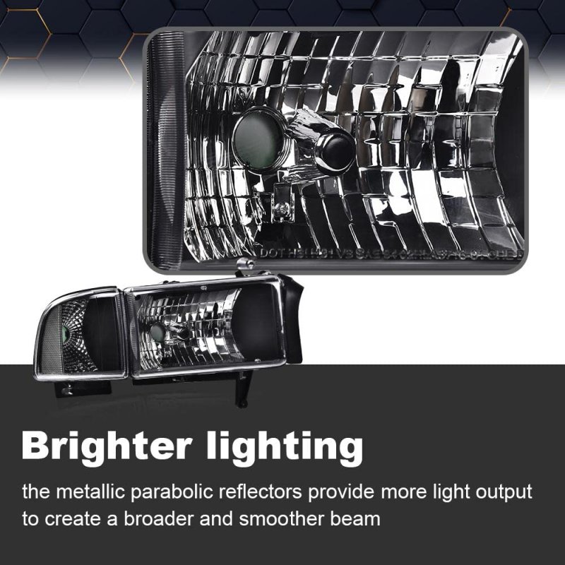 Vehicle Compatibility - Headlamp Assembly Compatible with 1994-2001 Dodge Ram 1500/1994-2002 Dodge Ram 2500 3500(Factory Style; Do Not Fit Sport Model & Ram Van Models!).Reference Part Number:55076749AD,55076748AD,55076749AO,55076748AO. Heavy-Duty Housing MATERIAL - This headlamp has a solid structure, a fully sealed heavy-duty housing made of high-quality OEM grade ABS plastic, with a waterproof grade of up to IP65, ensuring excellent weather resistance and impact resistance. Meticulously crafted to provide bright illumination. New lens and reflector bring more superior lighting and ensure a pleasurable and comfortable driving experience.. Easy to Install - Plug and play, easy installation.Professional installation is highly recommended.. Sturdy Sealing Structure - The fully sealed heavy-duty housing is made of high-quality plastic,to ensure excellent weather resistance, impact resistance, and durability..Other fine products